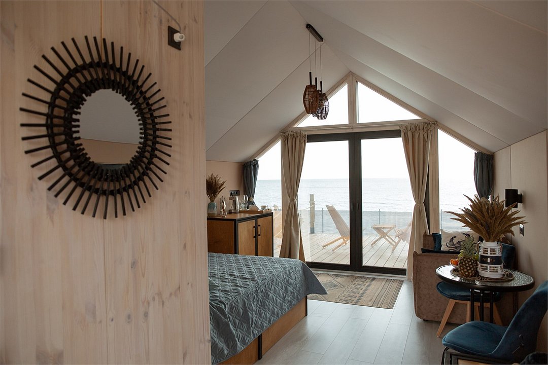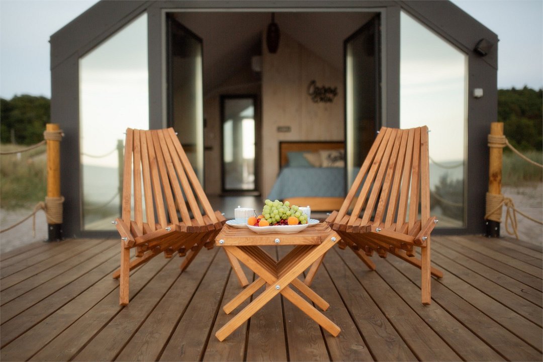 Уютное круглогодичное Бунгало на самом побережье Балтики всего в 50 метрах от моря! Отлично подходит для романтического отдыха с любимым человеком или спокойного отдыха с семьей. Вас ждет безумно красивый вид на море с личной террасы, песчаные дюны, шум волн и незабываемые алые закаты балтийского побережья. Внутри Бунгало удобный продуманный интерьер, включающий в себя: • сундук с замком и вешалку для вещей; • большую двуспальную кровать; • диванчик с дополнительным спальным местом; • столик со стульями; • холодильник; • кондиционер; • чайник; • чайные пары и бутилированная питьевая вода. Мы постарались сделать ваш отдых максимально комфортным, поэтому персональный душ и туалет со всем необходимым для личной гигиены находится в самом Бунгало. Все это дополняется деревянной мебелью, размещенной на террасе, чтобы вы могли спокойно отдохнуть в любое время.Услуги и удобства