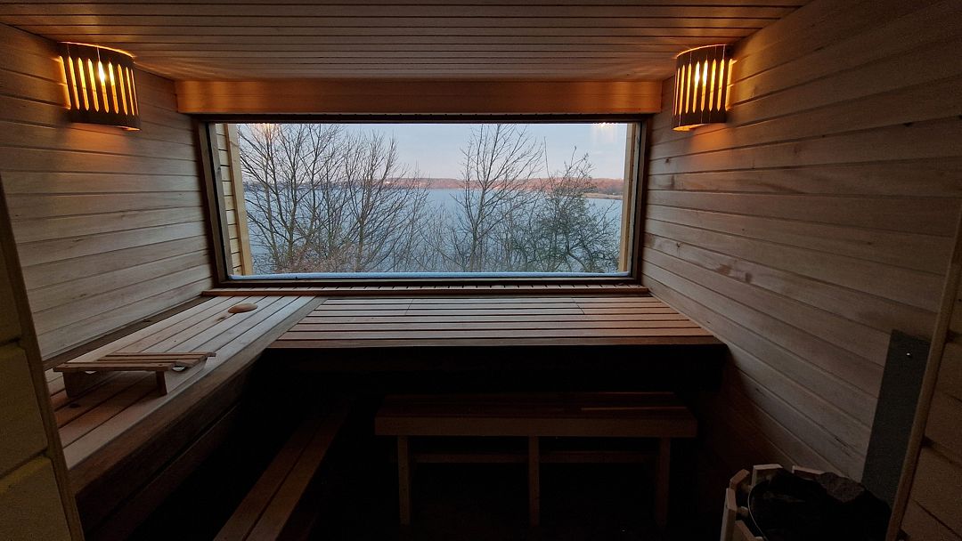 Читать полностьюУютная сауна с панорамным видом на озеро способна вместить до шести человек. В ней вы найдете все необходимое для комфортного отдыха: банные шапки, полотенца, кроксы, халаты, гель для душа, шампунь и кондиционер.