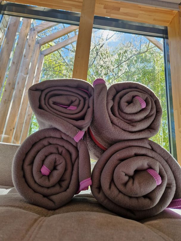 Кухня - полностью укомплектованная с бытовой техникой - посудомоечная машина, микроволновая печь, чайник, тостер, индукционная двухкомфорочная плитка, полноценный холодильник с морозильной камерой, термопот на 6,5 л, обеденный стол и стулья для шести гостей. В гостевой зоне раскладывающийся гостевой диван (200 х 150 см), журнальный столик, напольный светильник, телевизор со SmartTV. Также есть супер-тихий кондиционер инверторного типа, подогрев полов, на панорамных окнах - рулонные шторы блэкаут, полотенцесушители, фен, беспроводной ручной пылесос. Гель для душа, шампунь и кондиционер для волос, набор полотенец отельного качества (плотностью 500 г/м), кроксы, уличные пледы, халаты, шапочки для бани и банные простыни и многое другое предлагаются гостям (использование входит в стоимость проживания).