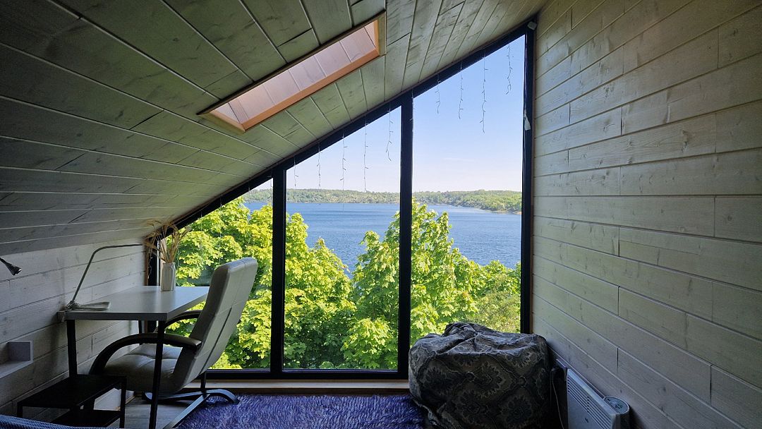 Рассчитан для 4 гостей. Внутри двуспальная кровать 180х200 с ортопедическим матрасом, с которой открывается захватывающий вид на всю панораму озера. Наверху также спальное место для двоих со светом для чтения, розетками и стеллажом. Постельное белье, полотенца гель-шампунь, кондиционер предоставляются.