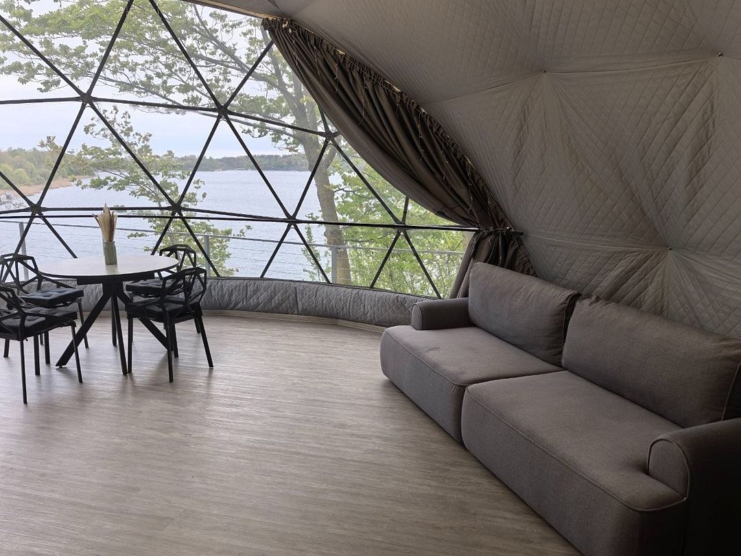 Круглогодичный купольный дом "Тихий океан" №6 базы отдыха "Кусто" в Янтарном, рассчитанный на 6 гостей. Заселение бесконтактное 24/7 по электронному коду.