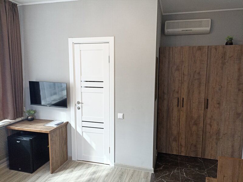 В номере двуспальная кровать с ортопедические гипоаллергенные матрасами. Санузел в номере. Также в номере мини бар, ТВ с цифровым телевиденьем и множеством приложений, гигабитный (сверхбыстрый) Wi-Fi, чайник, фен, набор полотенец, тапочки. Дополнительно можно добавить третье спальное место.