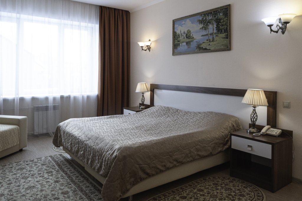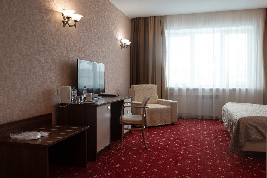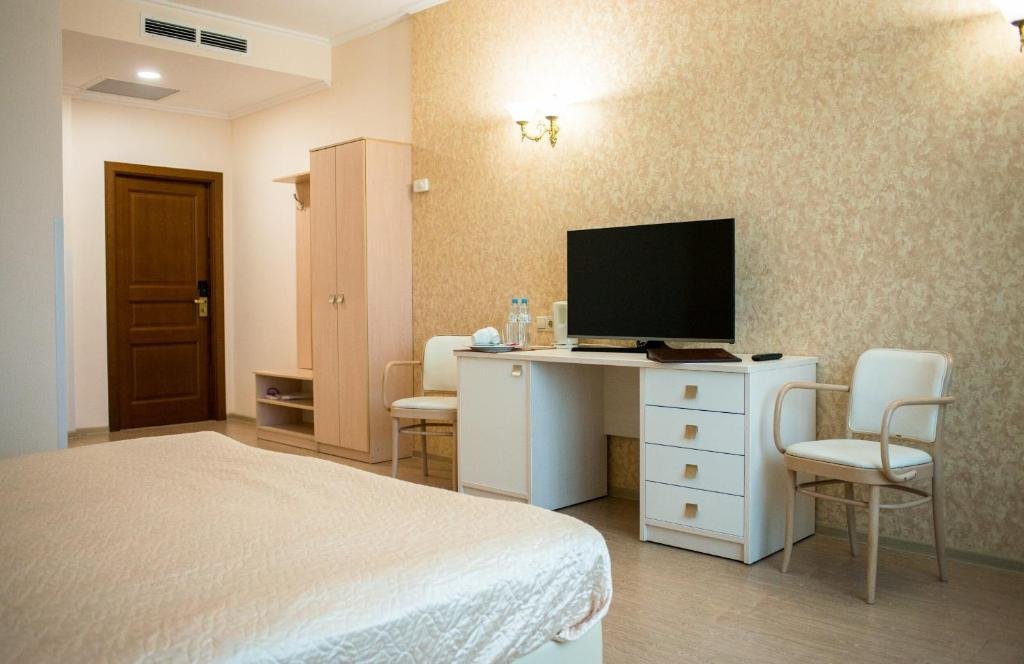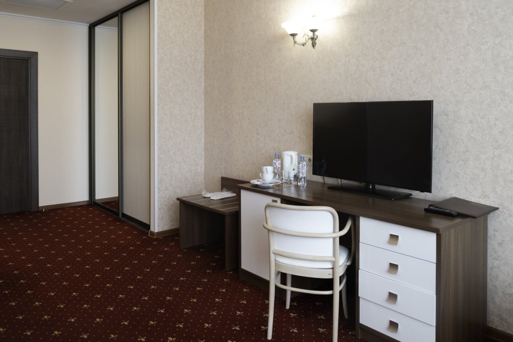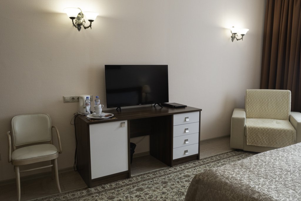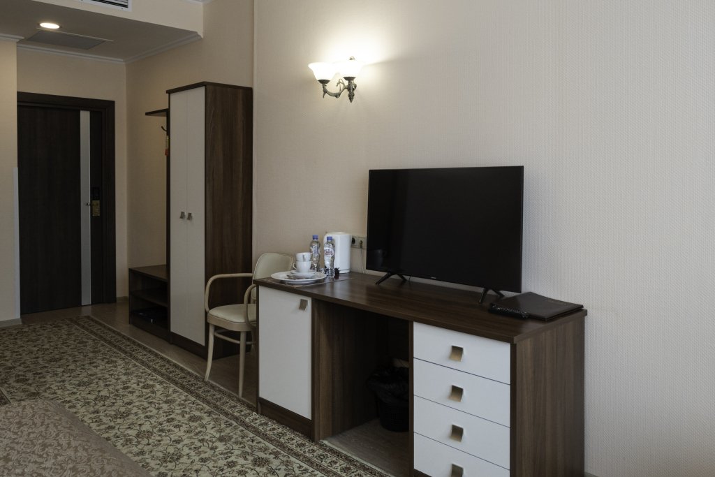 Чтобы вы могли отдохнуть после долгого дня, в номере есть телевизор и халат. Оснащение зависит от выбранной категории номера.