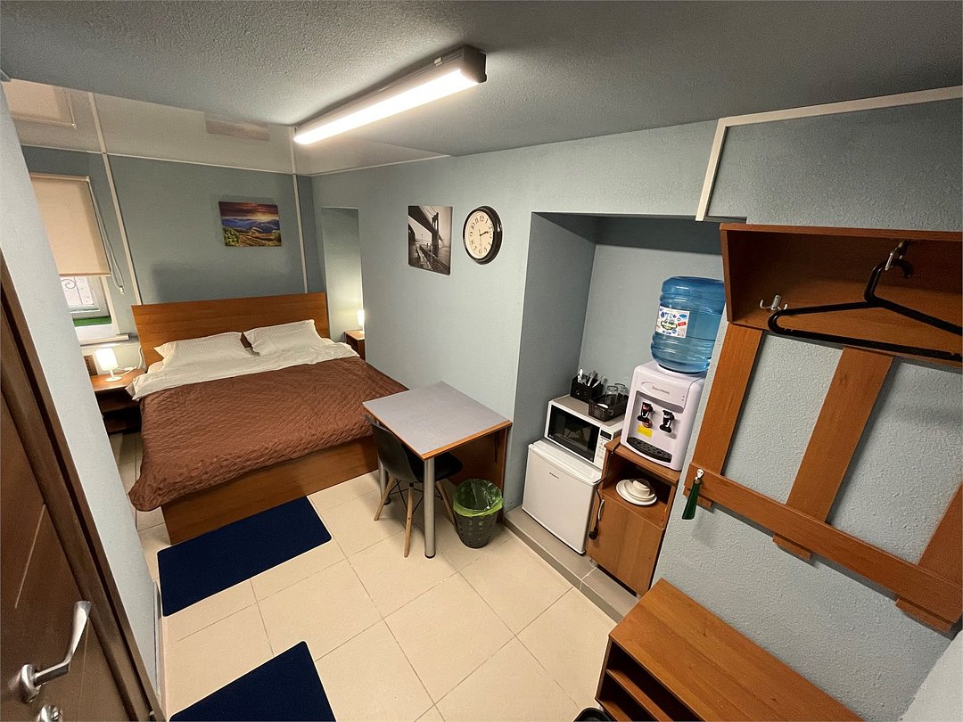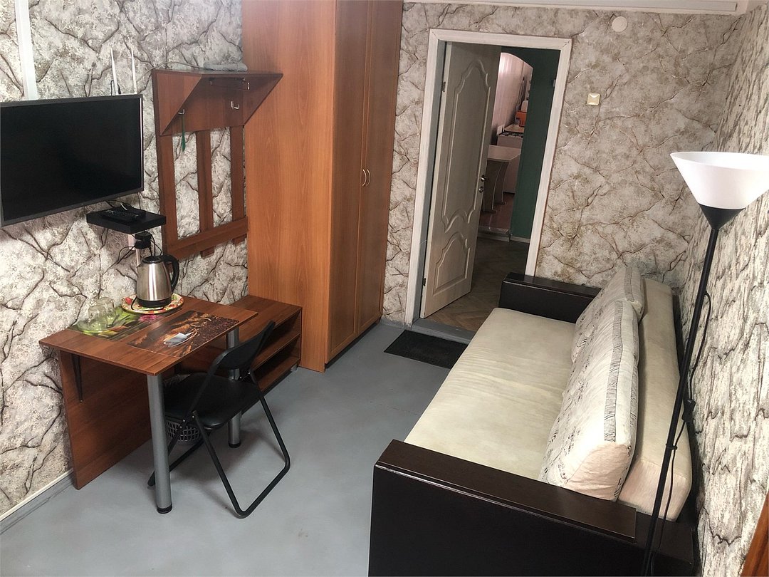 телевизор, Wi-Fi, интернет, светильник, утюг, односпальная кровать, диван, тумбы, стулья, вешалки, зеркало, кухня, питьевая вода, отопление, вид на город, вид во двор, кухонная посуда, стиральная машина и сушилка, стул, стол, тумба, санузел на этаже, цифровое тв, диван-кровать, телевизор с плоским экраном, душ на этаже, телевизор со Smart TVВ номере