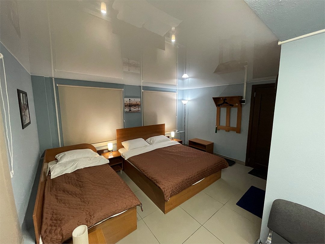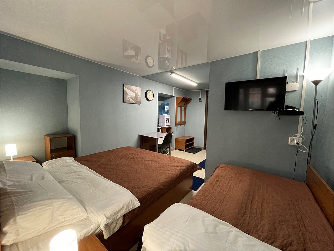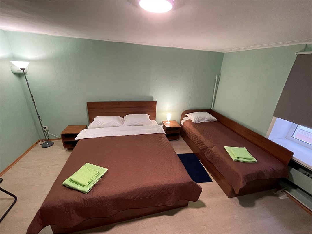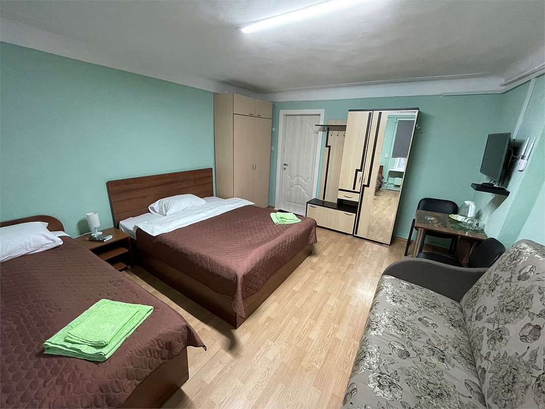 3-местный номер стандарт с 1 односпальной и 1 двуспальной кроватью. Общая ванная комната