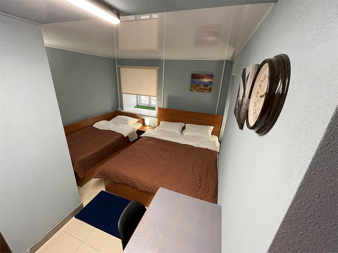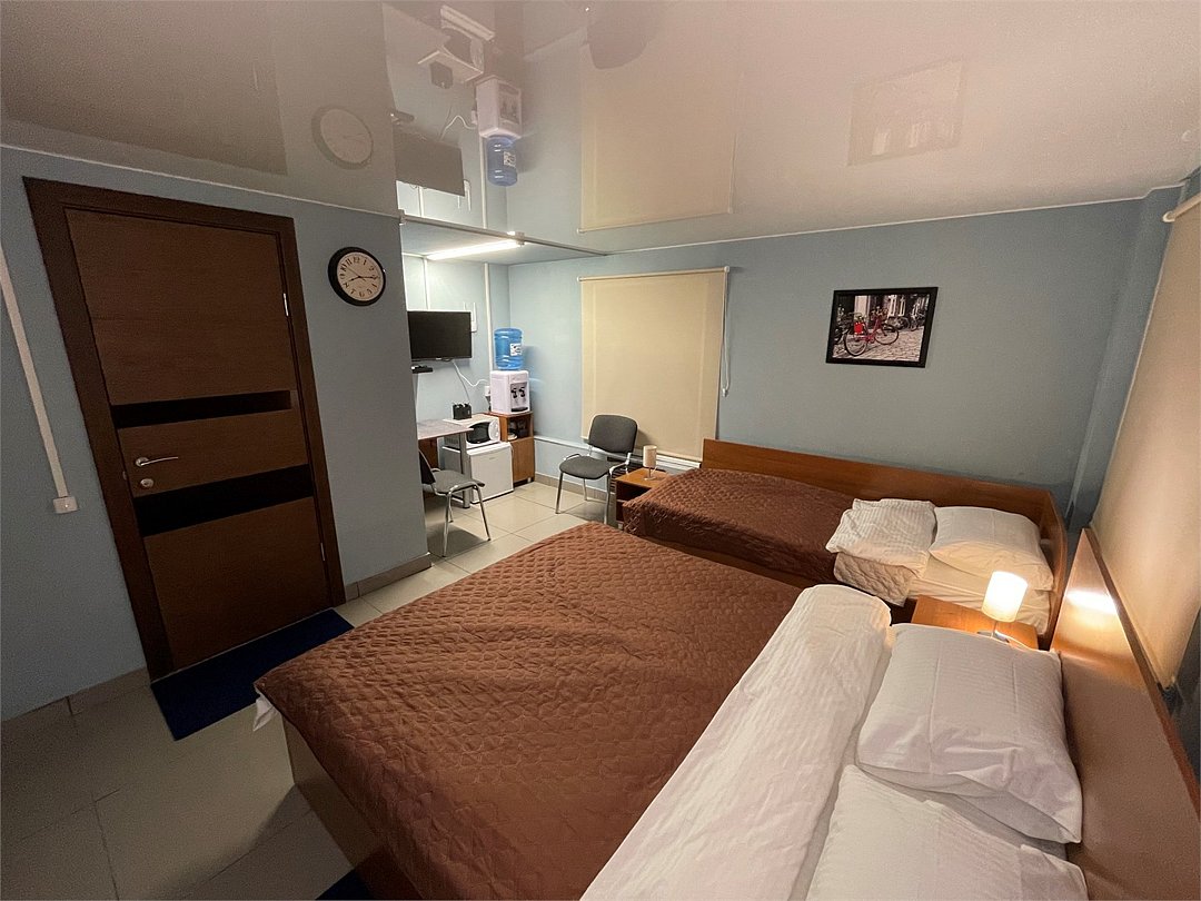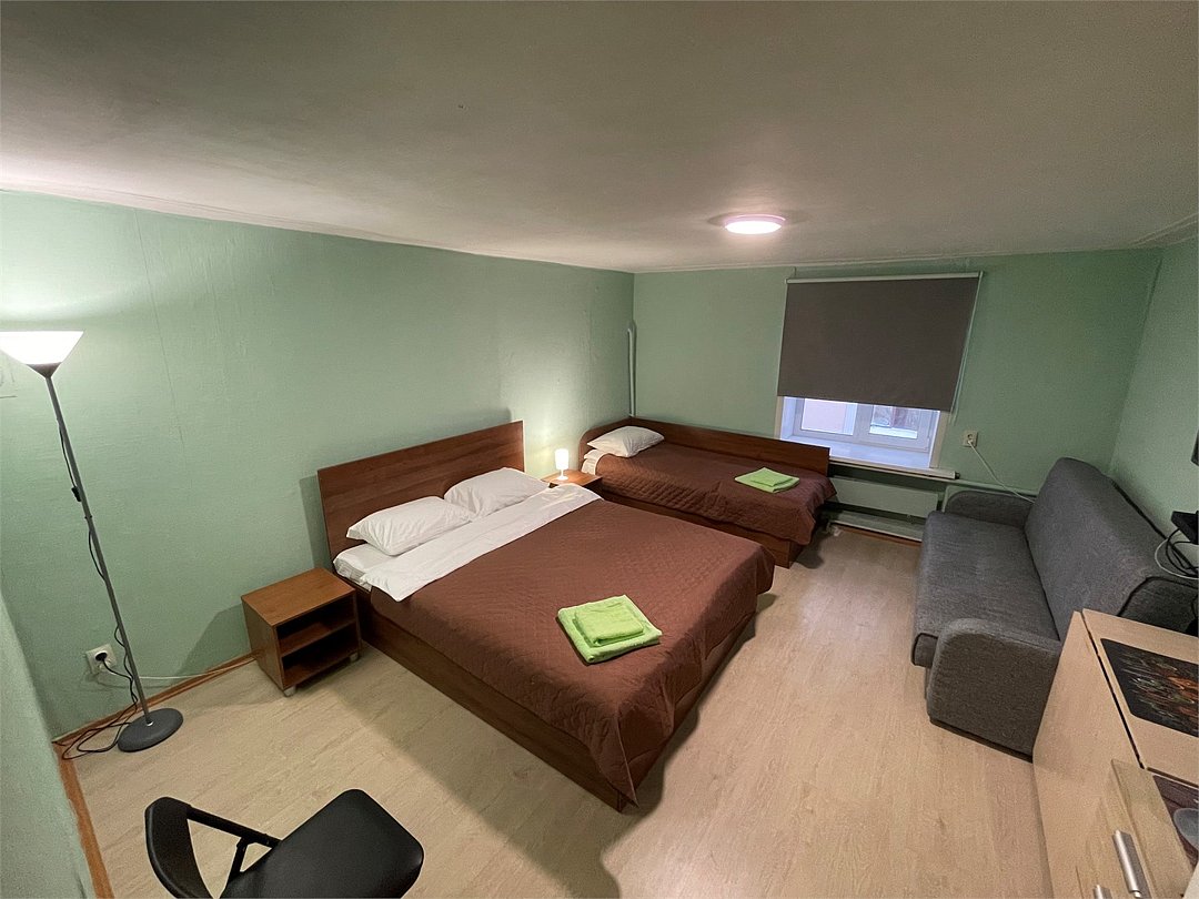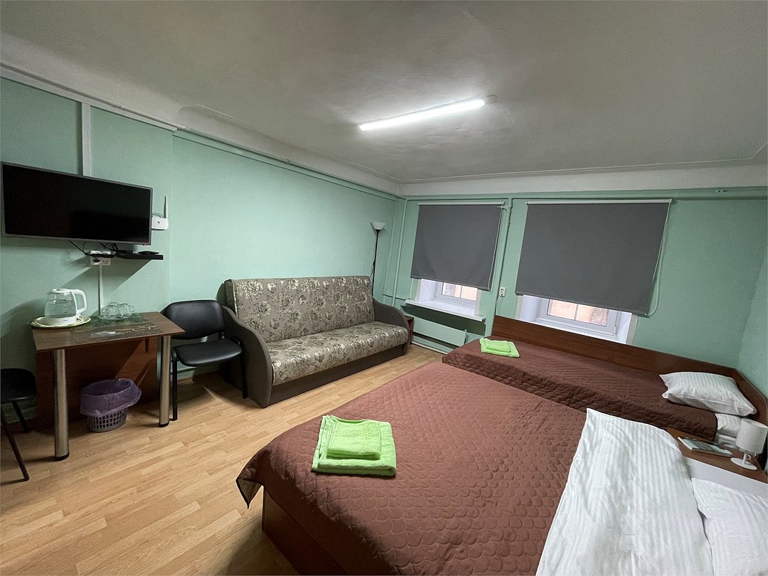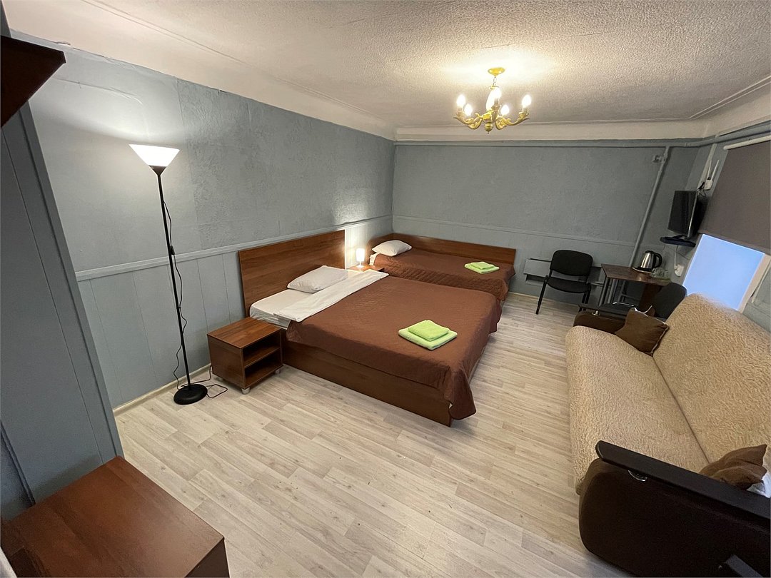 3-местный номер стандарт с 1 односпальной и 1 двуспальной кроватью. Общая ванная комната