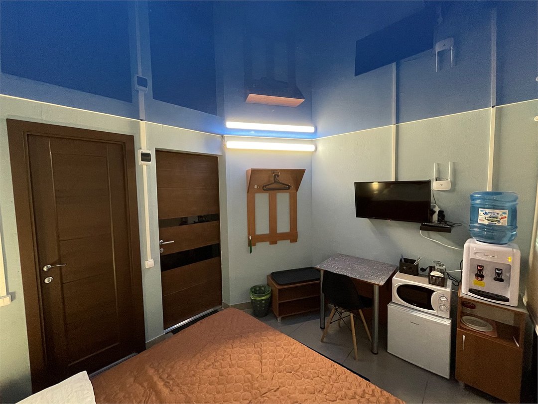 В номере санузел, душевая кабинка, телевизор, холодильник, микроволновая печь, киллер с холодной и горячей питьевой водой, чай, кофе, сахар, посуда. WiFiУслуги и удобства