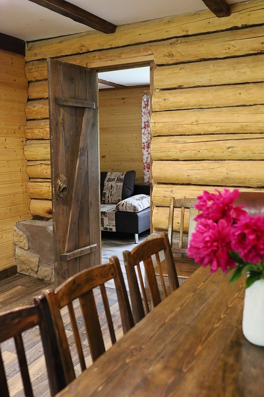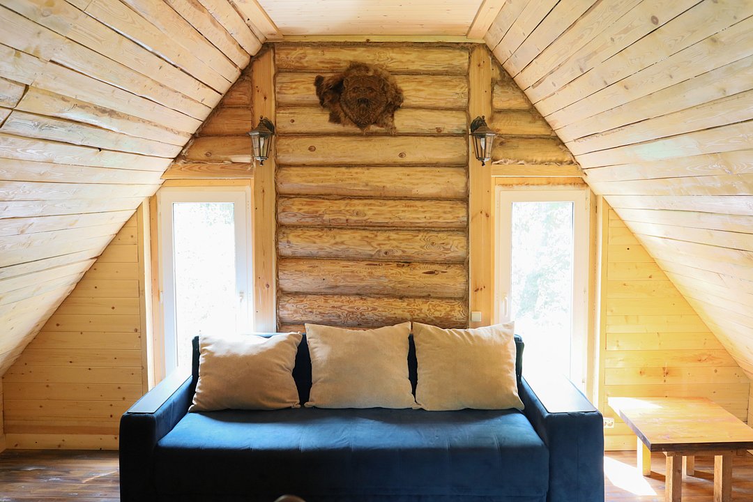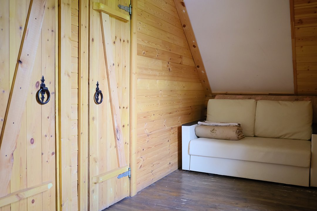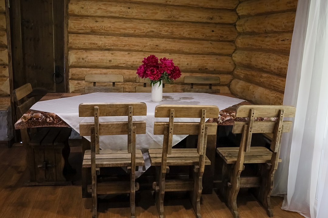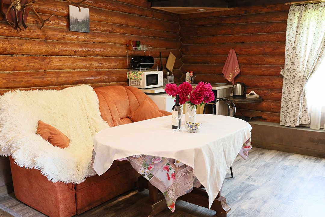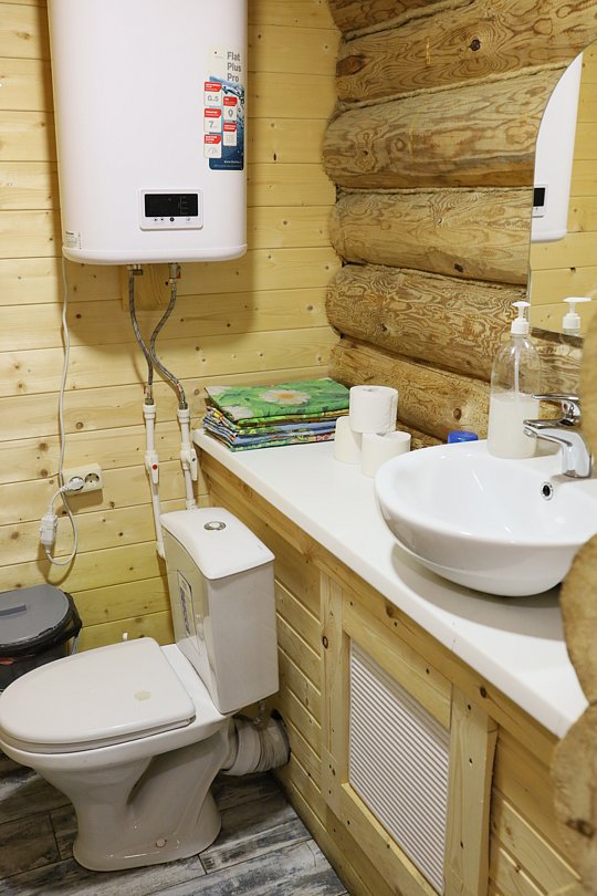 Дом из экологического сруба. В доме есть баня на дровах, оплачивается дополнительно, без ограничения по времени — 3000 ₽.