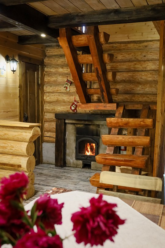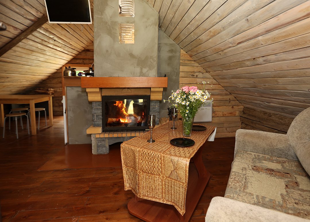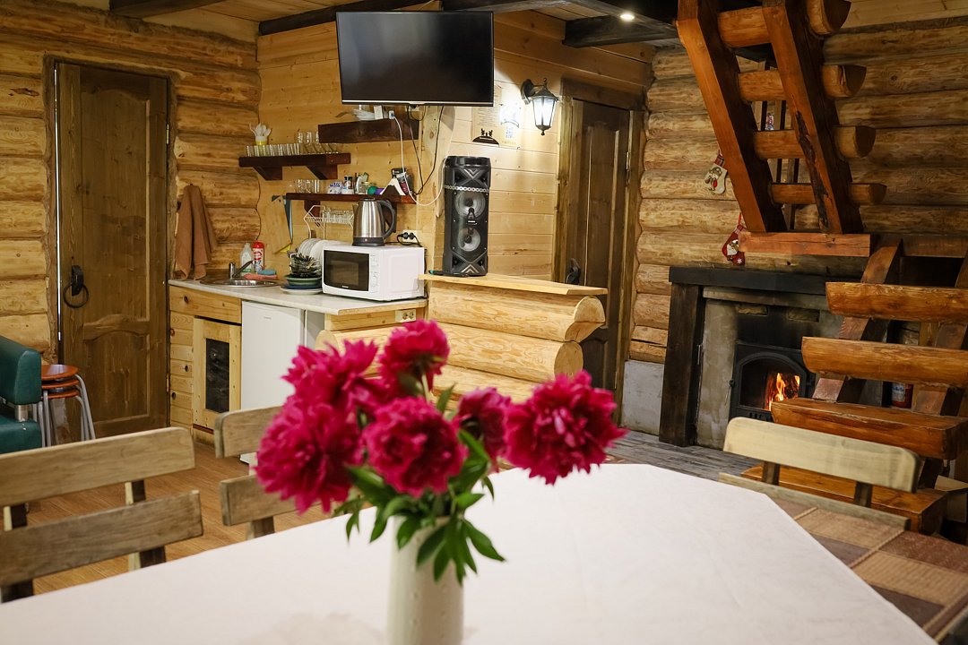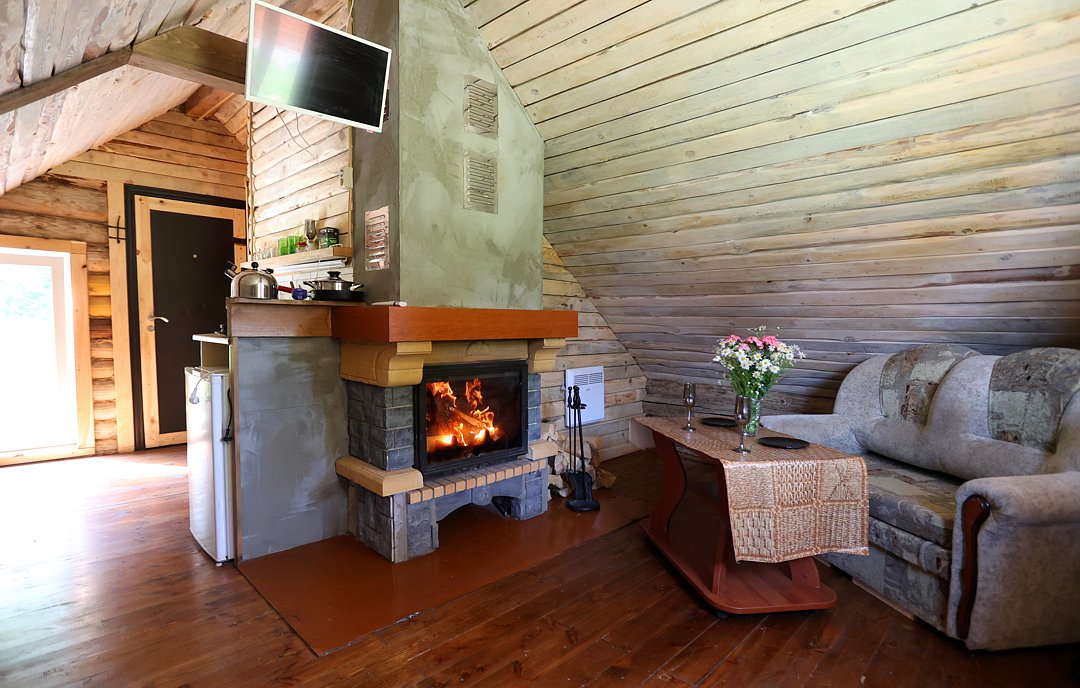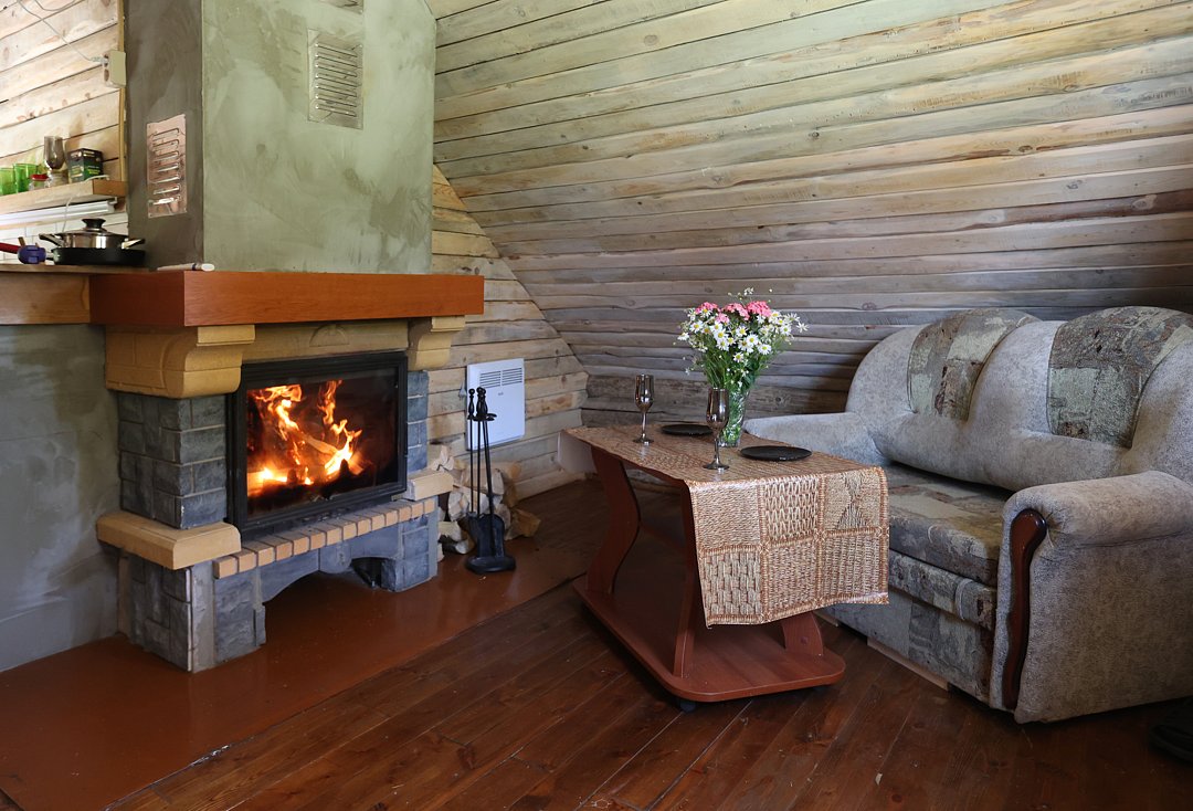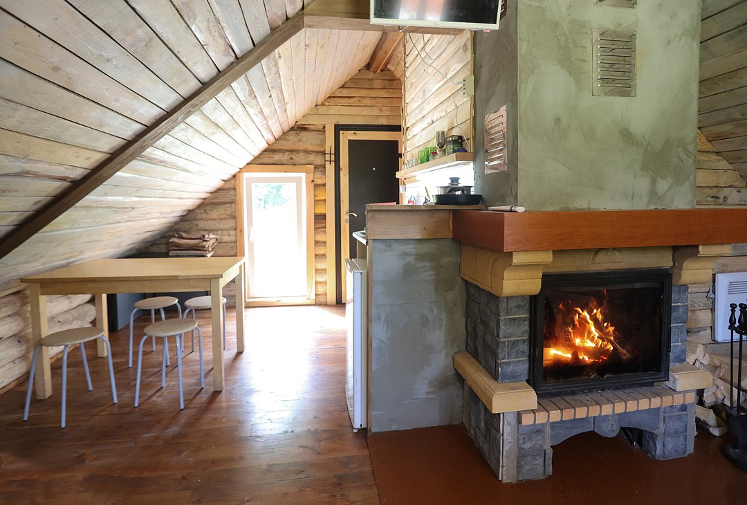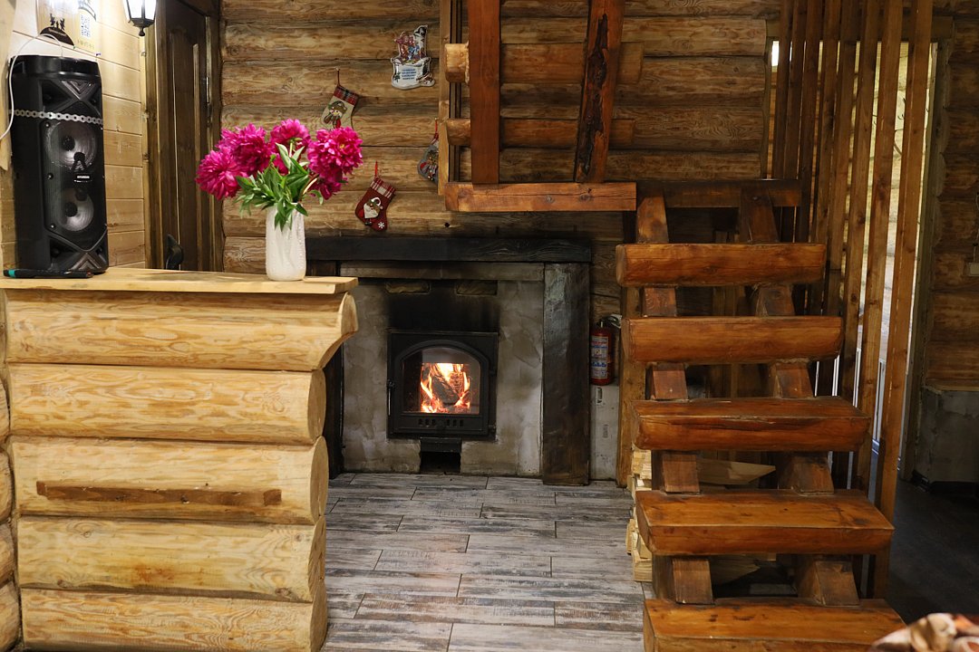 Домик с камином для романтических вечеров и тёплых встреч. Светлый семейный дом, экологический сруб, дизайнерский ремонт, 70 м², 2 этажа. Подойдёт как для семейного отдыха, так и для празднования дня рождения небольшой компанией.