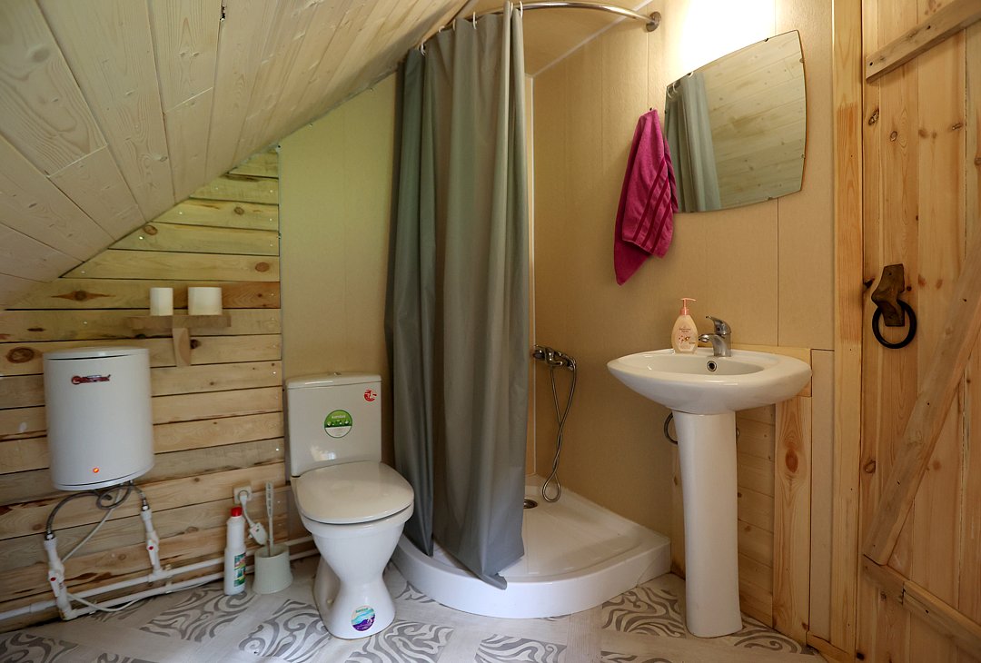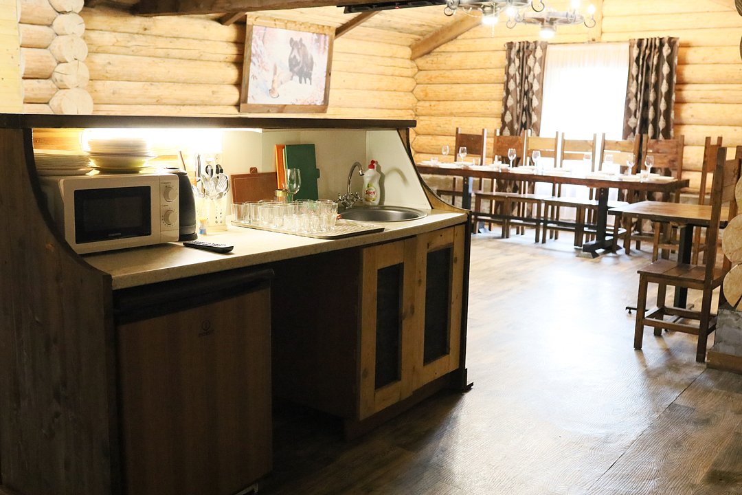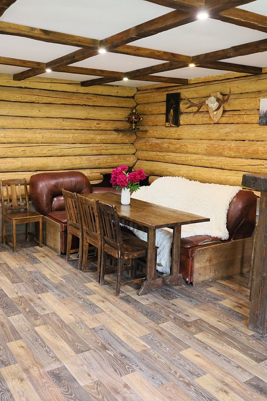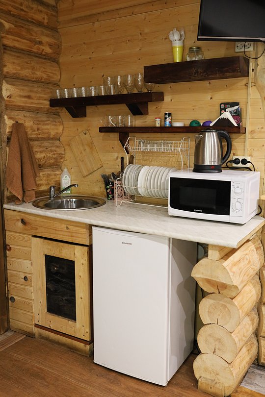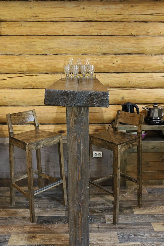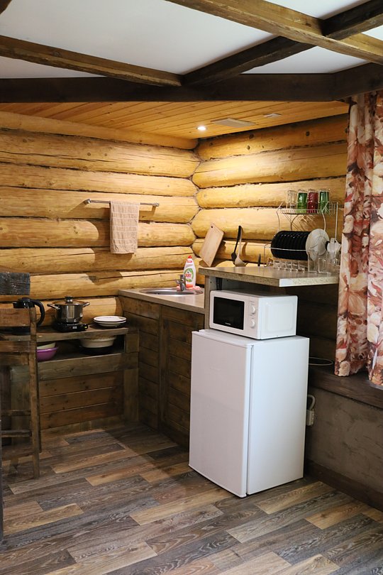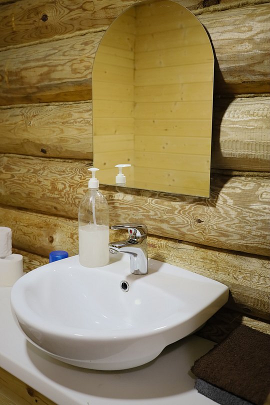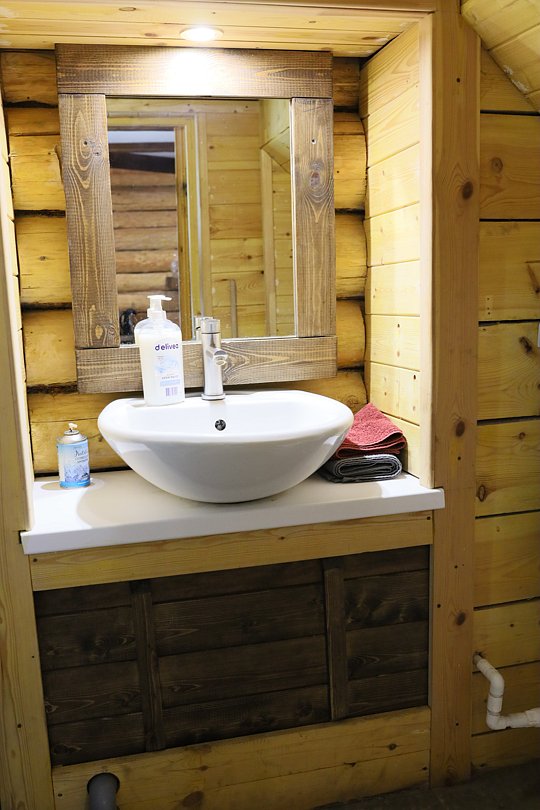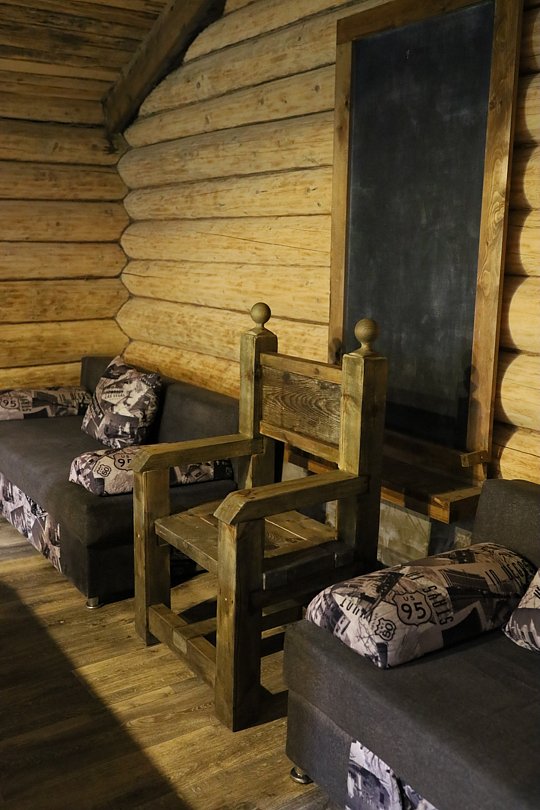 Рядом располагается настоящая русская баня на дровах. Оплачивается отдельно — 1500 ₽ / 2 часа.