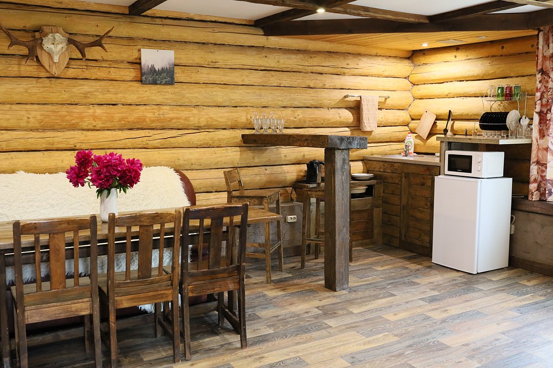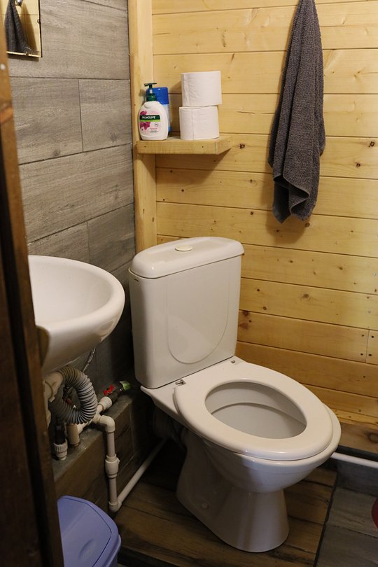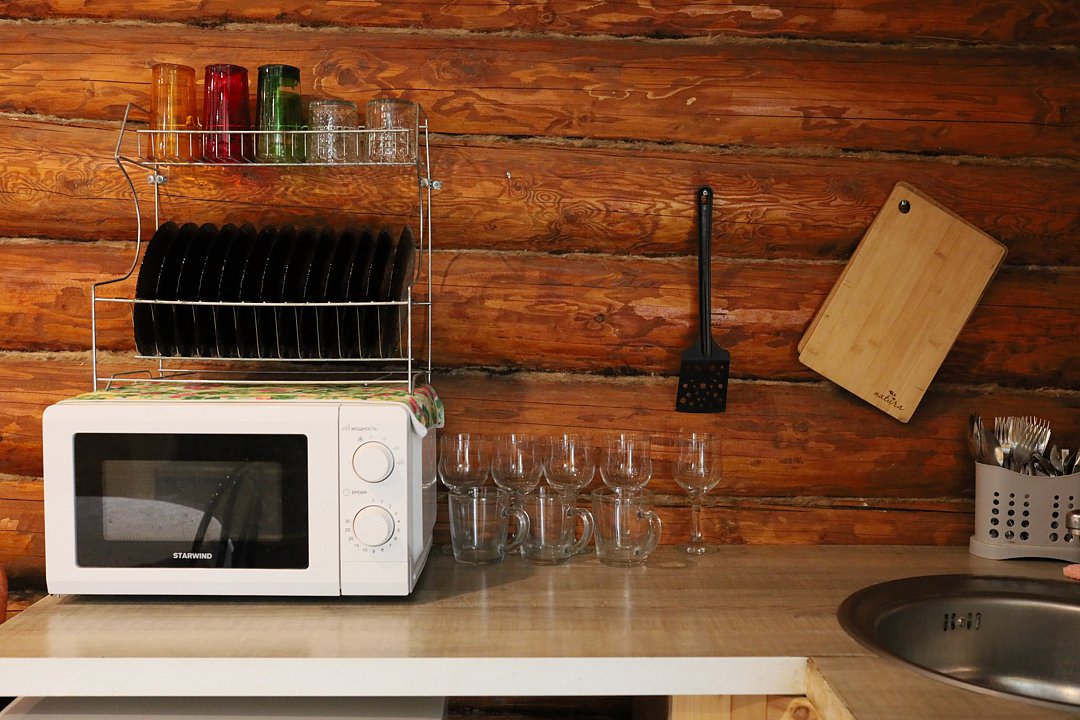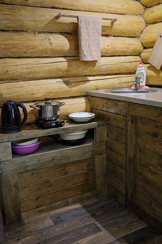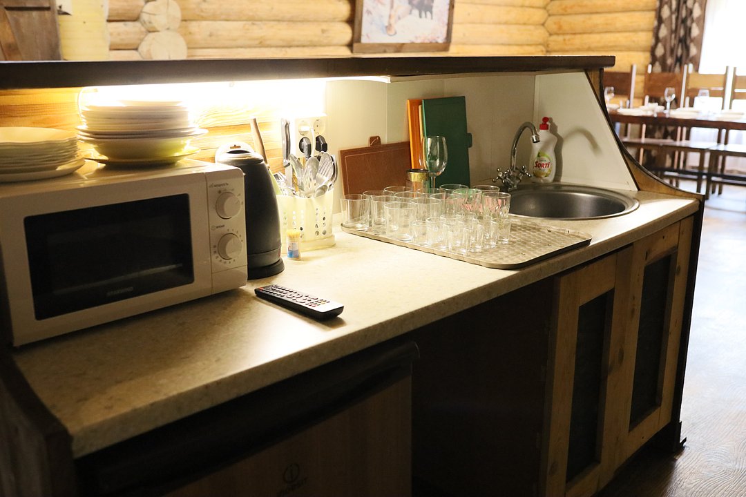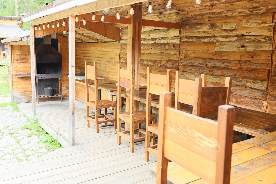 Рядом располагается настоящая русская баня на дровах. Оплачивается отдельно — 1500 ₽ / 2 часа.