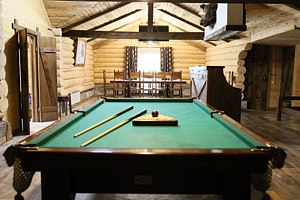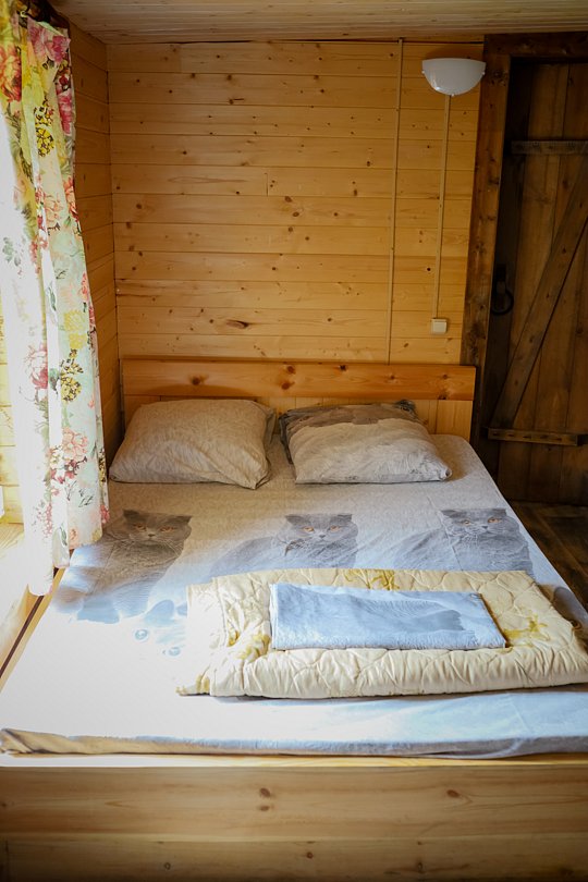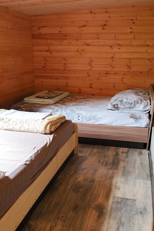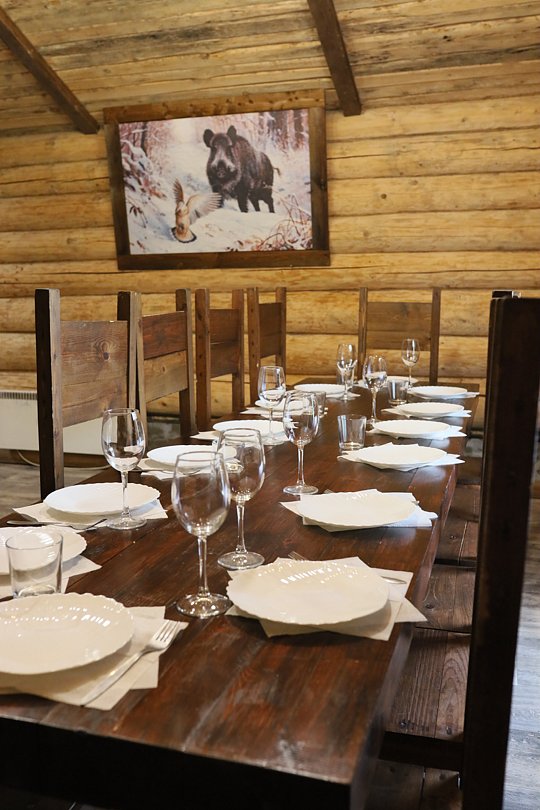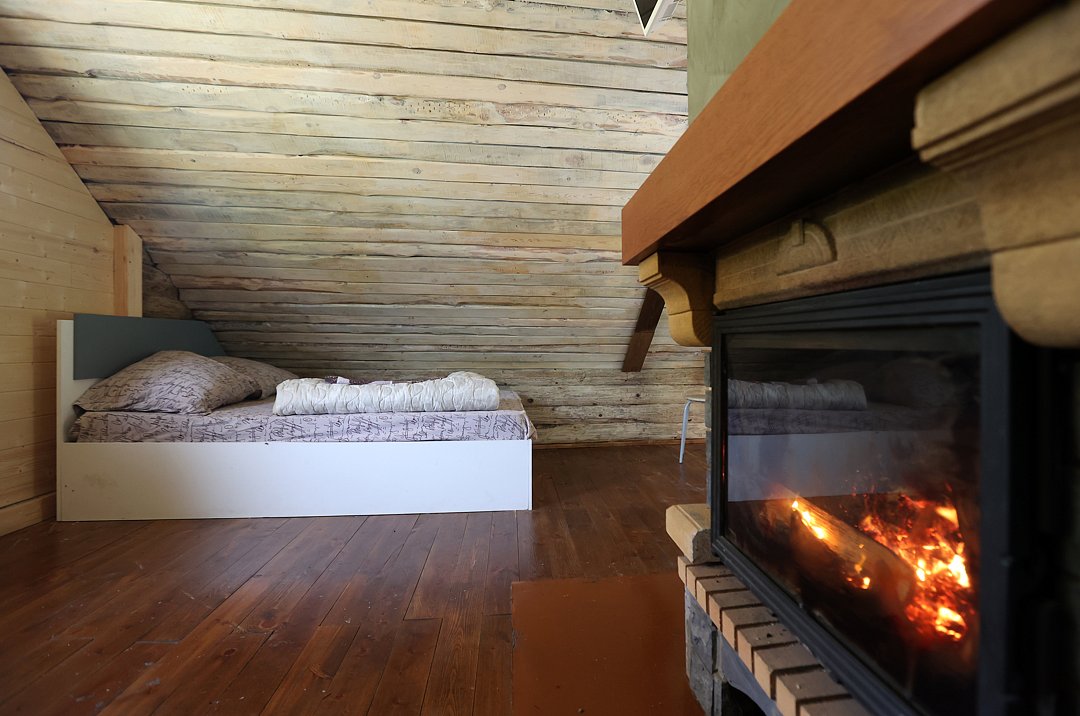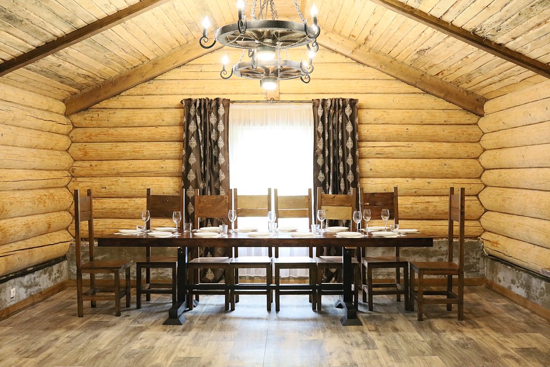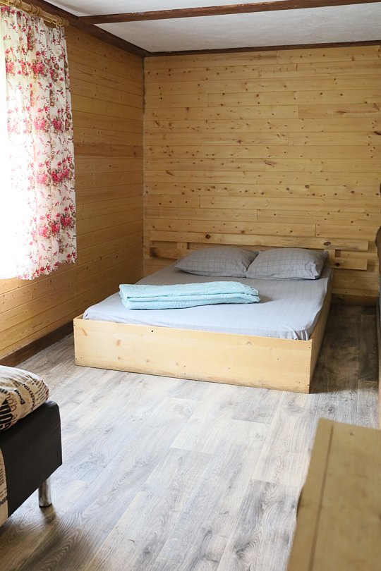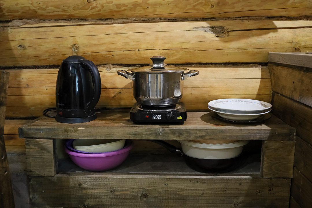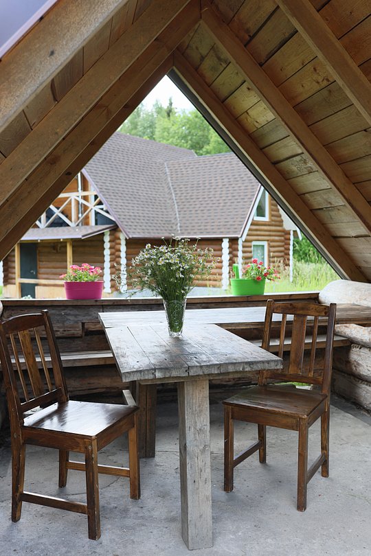 Рядом располагается настоящая русская баня на дровах. Оплачивается отдельно — 1500 ₽ / 2 часа.