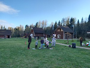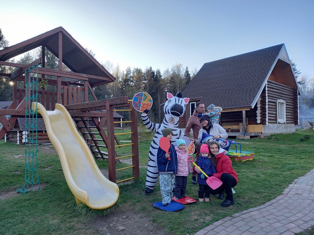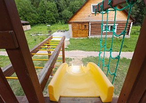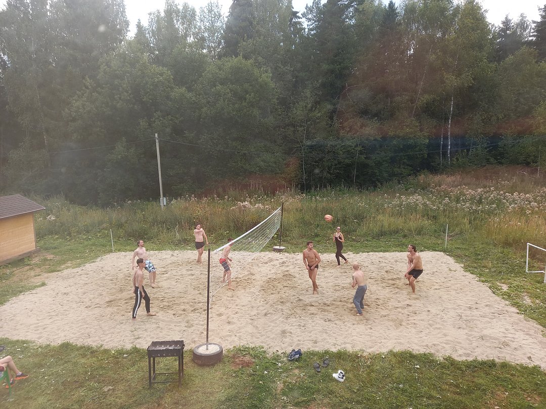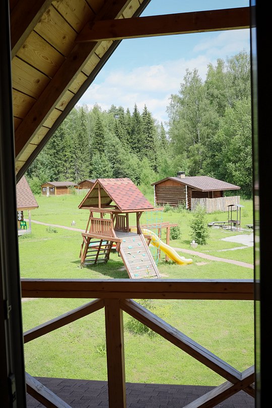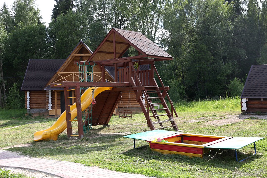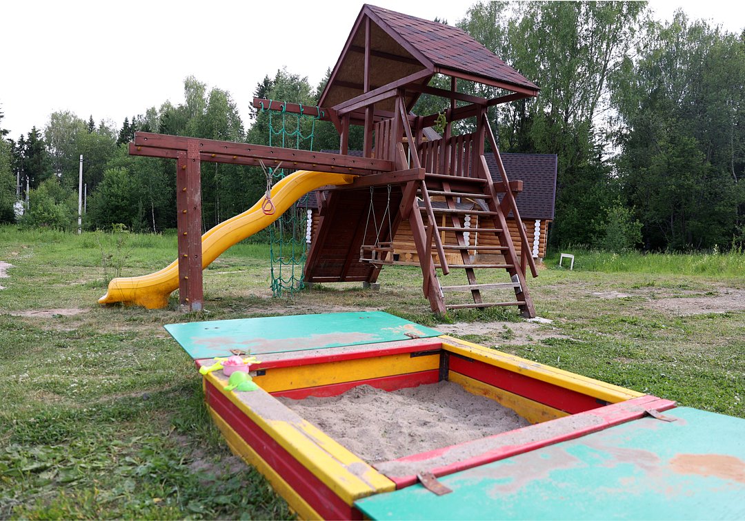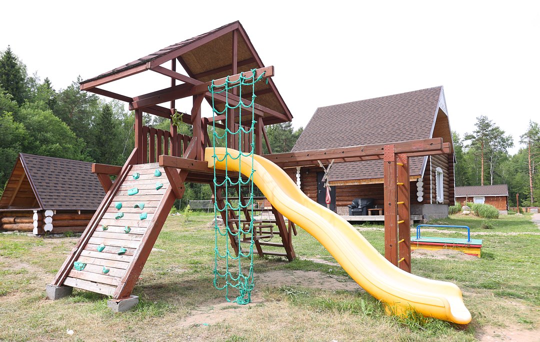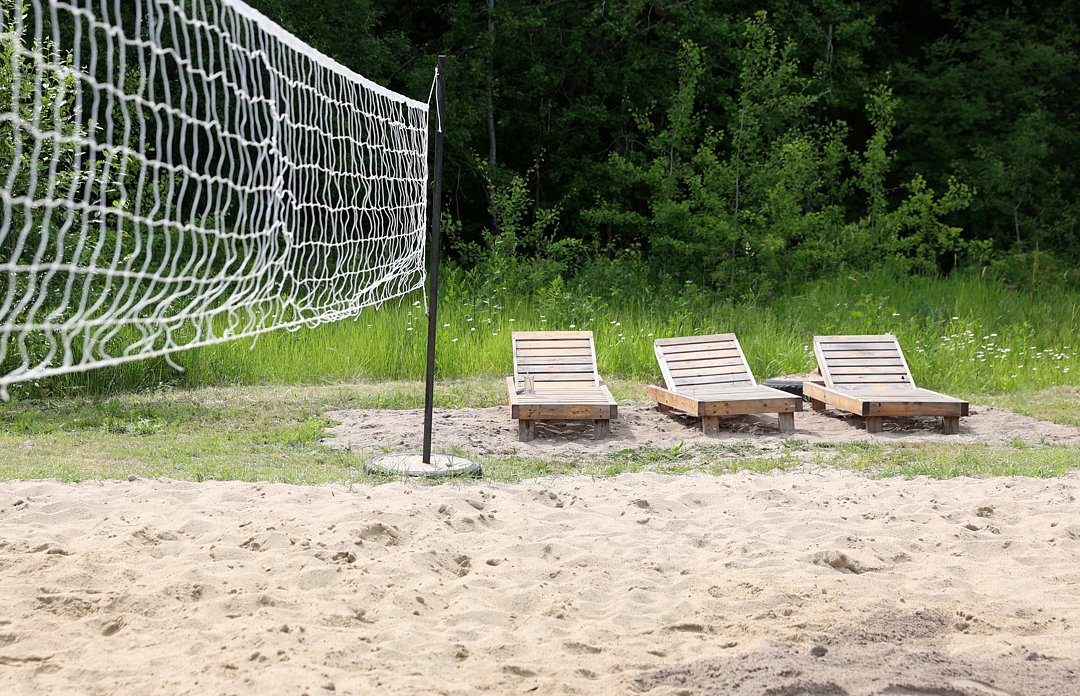 Территория комплекса предоставляет все возможности для отдыха. Здесь вас ждет просторная детская площадка с качелями и песочницей, волейбольная площадка и поле для пляжного футбола. Вы можете посетить настоящую русскую баню на дровах, чтобы завершить день в атмосфере полного релакса.