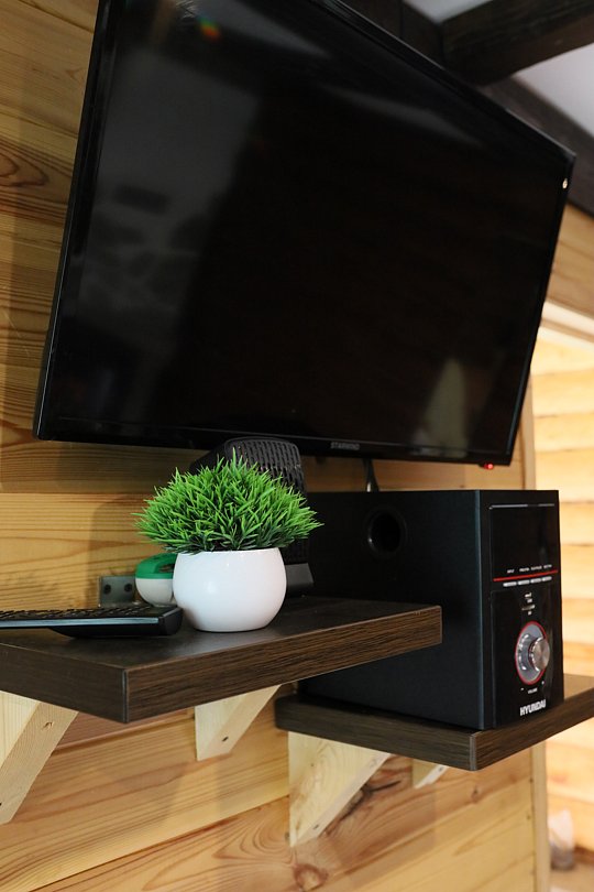 Из техники в доме телевизор, музыкальный центр, холодильник, чайник, микроволновка, электроплика, посуда.