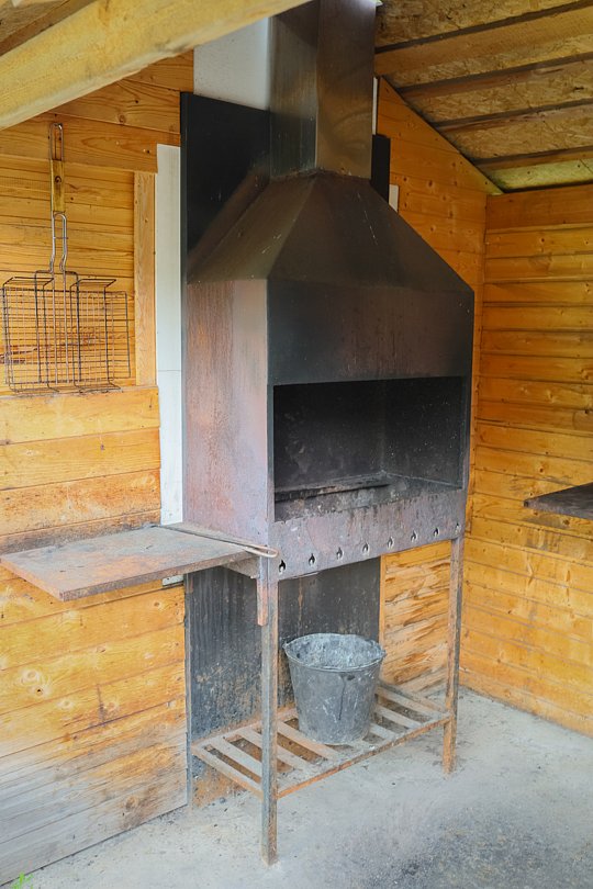 Крытая веранда, большой стол под навесом, летняя кухня, большой мангал (шампура и решетки входят в стоимость).