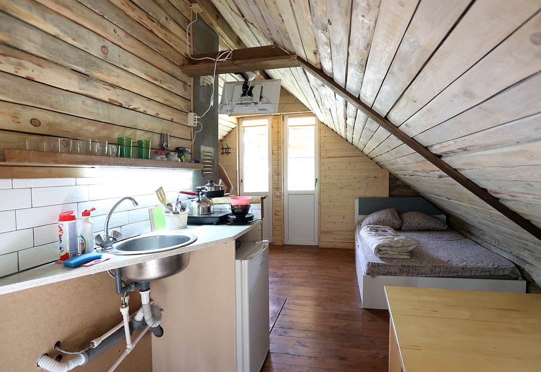 Маленький семейный дом, вместимостью 2 взрослых + ребенок. Площадь дома 20 м², дом-студия.