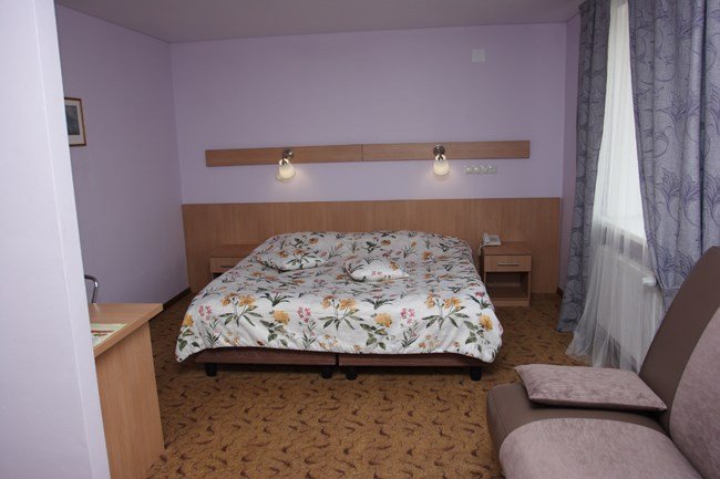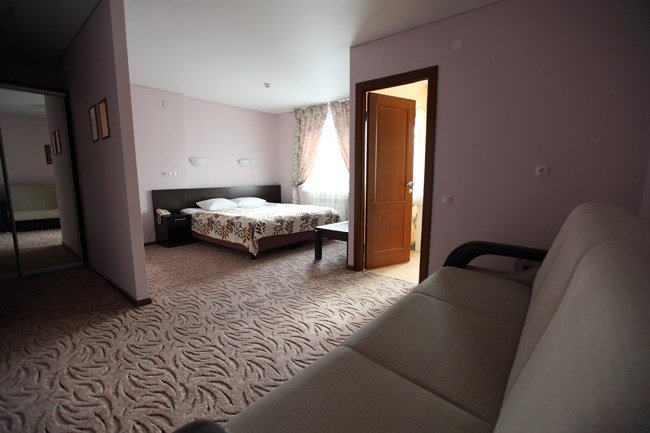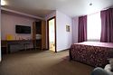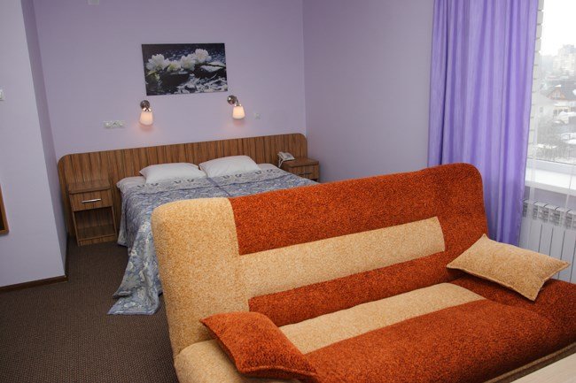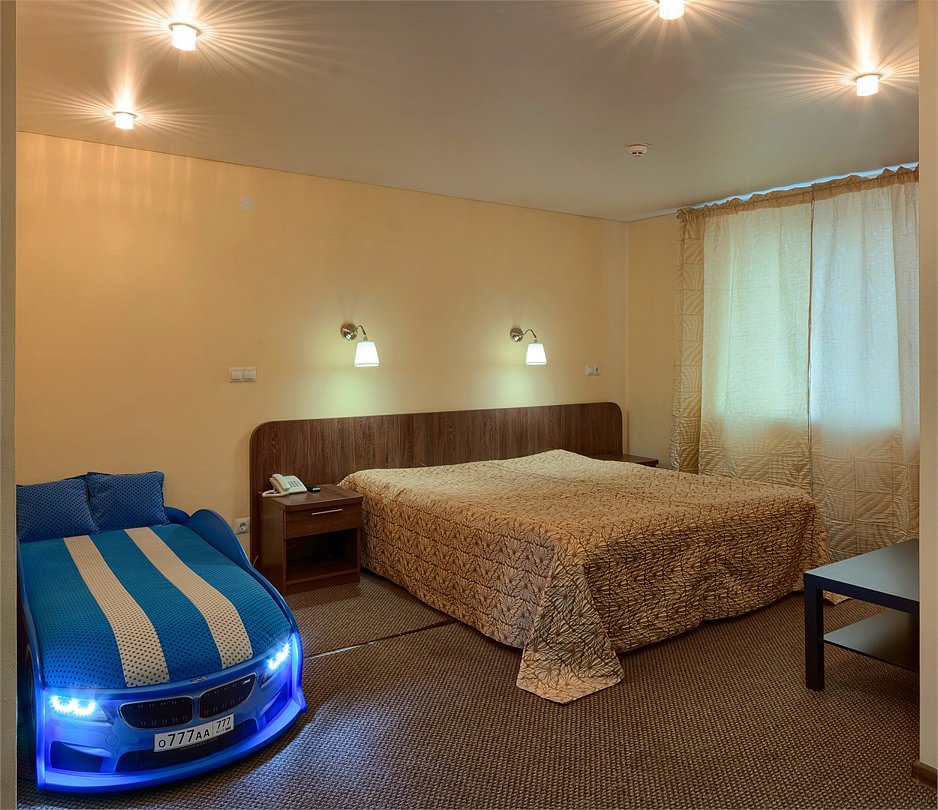 Семейный однокомнатный номер отличается от стандартного большей площадью помещения (как комнаты, так и санузла) – 34 кв. м., что обеспечивает гостям комфортное и уютное пребывание. Номер оснащен двуспальной кроватью (по желанию гостя трансформируется в две односпальные кровати) и диваном, рассчитан на проживание до четырех человек. Номера расположены на третьем и четвертом этажах отеля.Услуги и удобства