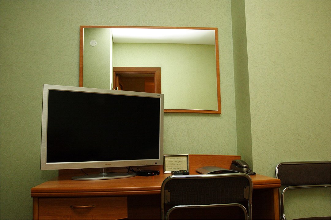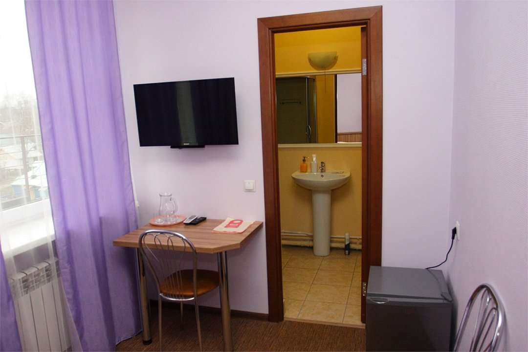 кабельное телевидение, Wi-Fi, кондиционер, светильник, система безопасности, душевая кабина, банные полотенца, тапочки, гигиенические средства, косметические средства, односпальная кровать, гипоаллергенное белье, ортопедический матрас, тумбы, стулья, шкаф для одежды, вешалки, письменный стол, зеркало, обслуживание номеров, информационная карта, меню, унитаз, раковина, косметическое зеркало, питьевая вода, ковровое покрытие, отопление, кулер на этаже, вид во двор, стаканы, туалетные средства, внутренний телефон, телевизор с плоским экраном, мини-холодильник, москитная сетка, гостиничная парфюмерияВ номере