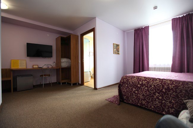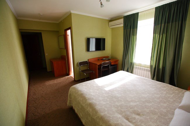 телевизор, кабельное телевидение, Wi-Fi, кондиционер, светильник, настольные лампы, система безопасности, душевая кабина, банные полотенца, тапочки, гигиенические средства, косметические средства, двуспальная кровать, гипоаллергенное белье, ортопедический матрас, тумбы, стулья, шкаф для одежды, вешалки, журнальный столик, письменный стол, зеркало, обслуживание номеров, информационная карта, меню, унитаз, раковина, косметическое зеркало, ковровое покрытие, отопление, кулер на этаже, вид во двор, стаканы, туалетные средства, внутренний телефон, мини-холодильник, москитная сетка, гостиничная парфюмерияВ номере