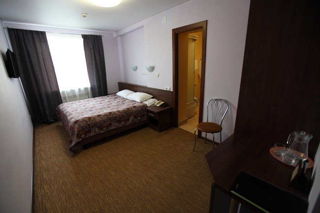 Стандартный двухместный номер – классический вариант для двухместного размещения. Категория Стандарт подразумевает проживание гостей на втором, третьем и четвертом этажах здания отеля. Стандартный двухместный номер отличается от экономичного варианта большей площадью (24 кв. м.). В номере находится двуспальная кровать, по желанию гостя она трансформируется в две односпальные кровати. Для комфортного проживания и отдыха гостей номер оснащен совмещенным санузлом с душевой кабиной.Услуги и удобства