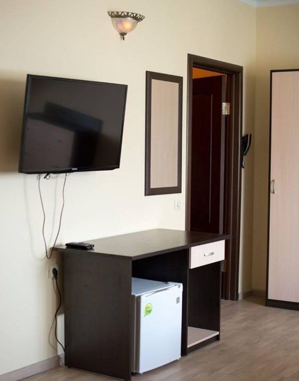 телевизор, Wi-Fi, интернет, кулер, фен, микроволновая печь, утюг, обогреватель, душевая кабина, теплый пол, банные принадлежности, банные полотенца, гигиенические средства, двуспальная кровать, диван, шкаф для одежды, вешалки, зеркало, комод, раковина, душ, кулер на этаже, стол, тумба, туалет, цифровое тв, телевизор с плоским экраном, мини-холодильник, шапочка для душа, стульчик для кормления ребенка, можно с питомцамиВ номере