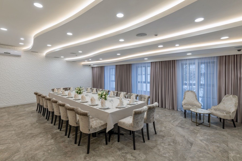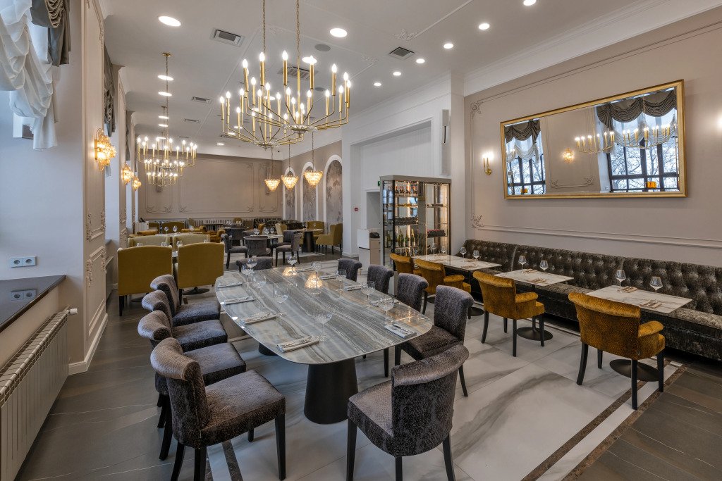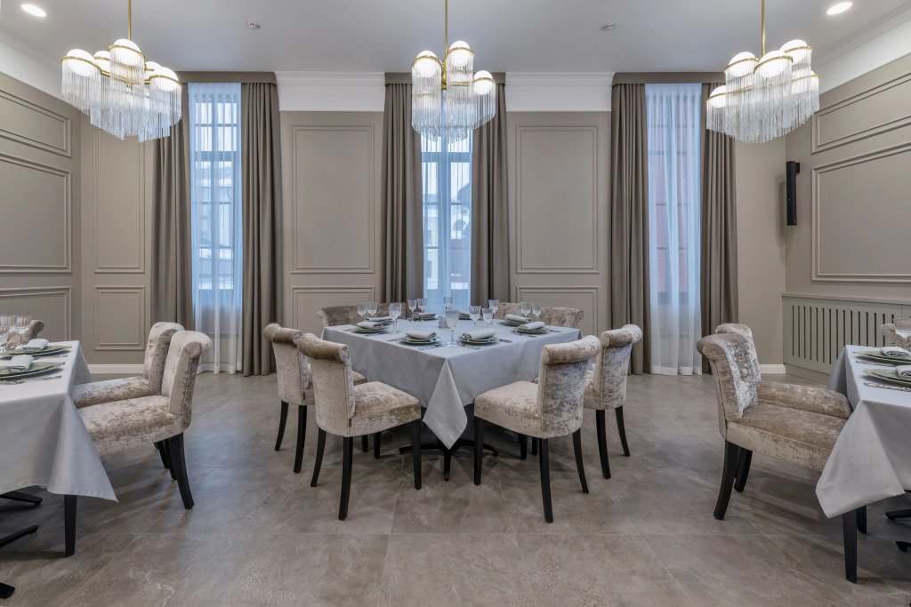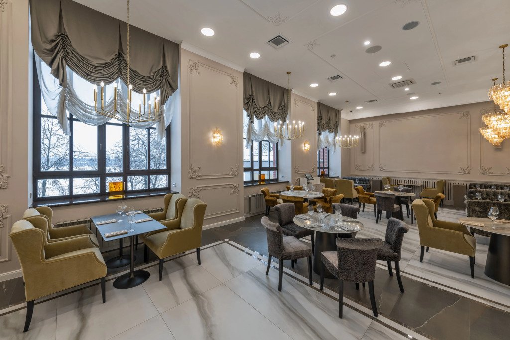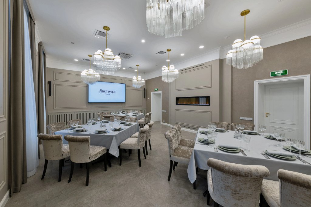 На территории отеля расположен концептуальный ресторан «Барин» с видом на Волгу, конферец-зал и банкетные площадки.