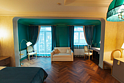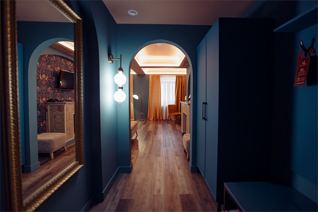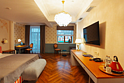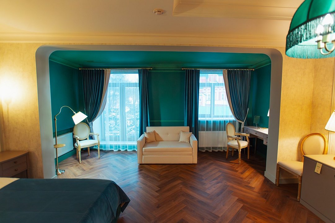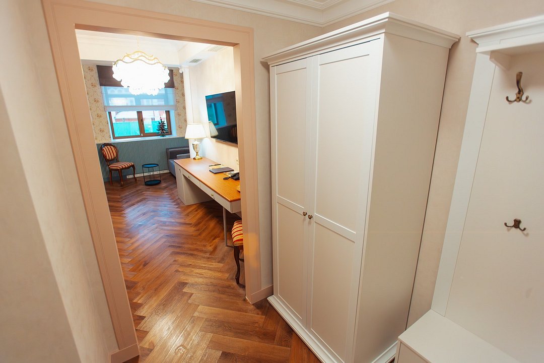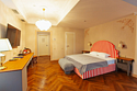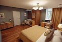 Большой двухместный номер со всеми удобствами. С двухспальной кроватью размеров 180*200 м, в трех номерах 200*200 м. В номере есть диван, журнальный стол, мини-бар, кондиционер, предоставляется чайно-кофейная станция. Собственная ванная комната с косметическими принадлежностями, предоставляются тапочки и халаты. Завтрак "шведский стол" входит в стоимость проживания. Дополнительное место оплачивается отдельно. Номера в данной категории имеют название "Кин Дза Дза", "Хоромы Иоанна Васильевича", "Есенин", "12 стульев". При бронировании просьба уточнять доступность понравившегося номера.Услуги и удобства