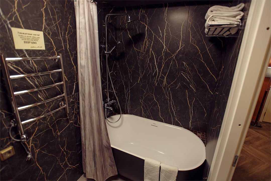 Большой двухместный номер со всеми удобствами. С двухспальной кроватью размеров 180*200 м. В номере есть диван, журнальный стол, мини-бар, кондиционер. Собственная ванная комната с косметическими принадлежностями, предоставляются тапочки, халаты по запросу. Завтрак "шведский стол" входит в стоимость проживания. Дополнительное место оплачивается отдельно. Номера в данной категории имеют название "Ярослав", "Большая перемена", "Мусорщик", "Любовники" и "Ваксман". При бронировании просьба уточнять доступность понравившегося номера.Услуги и удобства