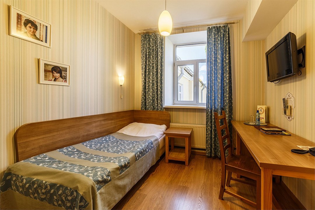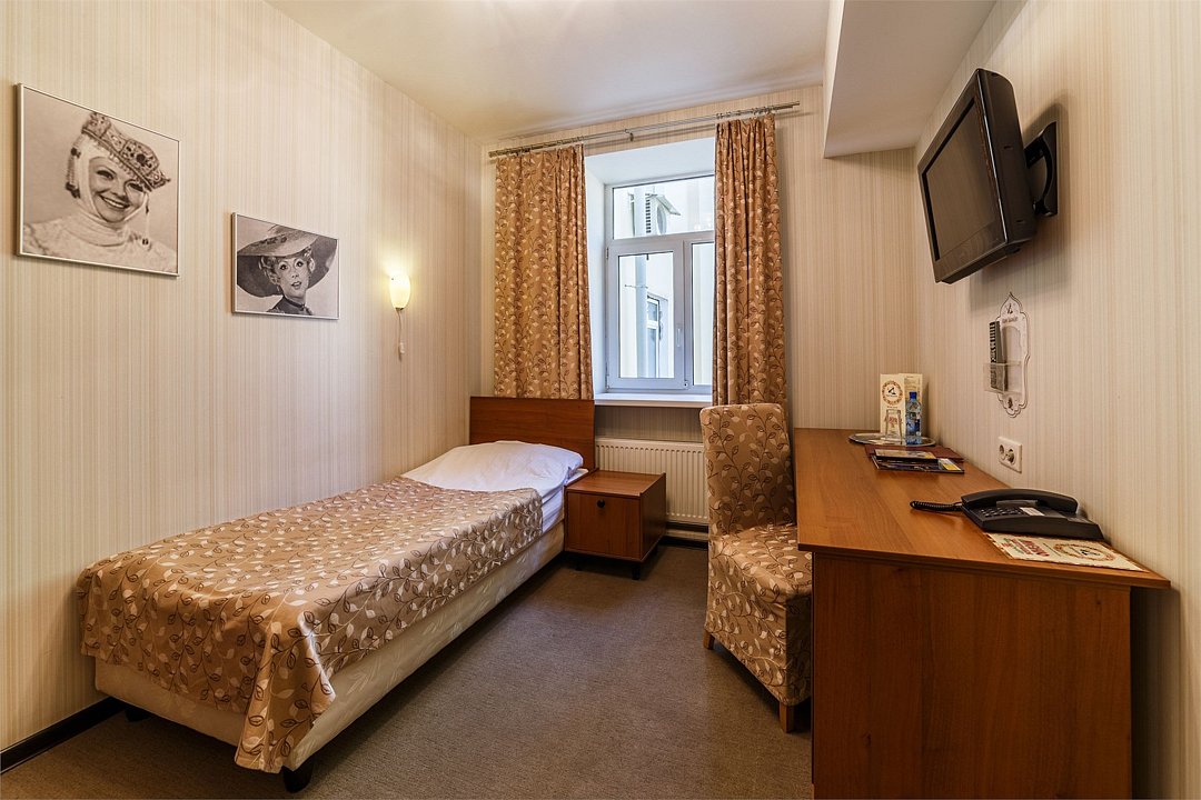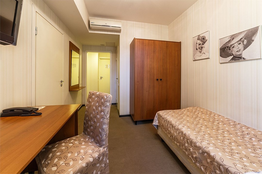 Одноместный номер со всеми удобствами оформлены в стилистике фильмов снимавшихся в Ярославле и Ярославской области. С односпальной кроватью. В номере рабочий стол, мини-бар, шкаф для одежды, прикроватная тумбочка, кондиционер. Собственная ванная комната с косметическими принадлежностями, предоставляются тапочки, халат по запросу. Завтрак "шведский стол" входит в стоимость проживания. Номера называются "Квартира Афони" и "Квартира инженера Тимофеева".Услуги и удобства