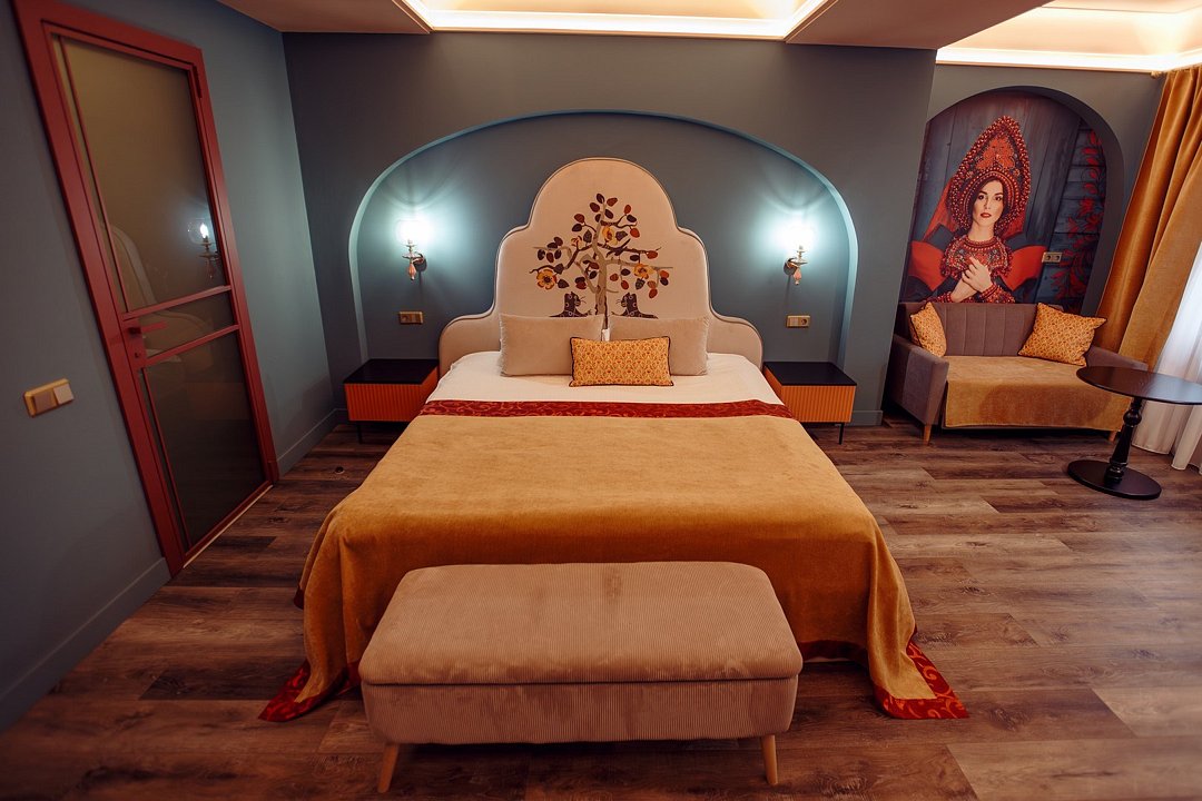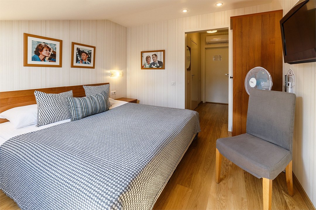 Двухместный номер со всеми удобствами оформлены в стилистике фильмов снимавшихся в Ярославле и Ярославской области. С двуспальной кроватью. В номере рабочий стол, мини-бар, шкаф для одежды, прикроватные тумбочки, кондиционер. Собственная ванная комната с косметическими принадлежностями, предоставляются тапочки, халаты по запросу. Завтрак "шведский стол" входит в стоимость проживания. При бронировании просьба уточнять доступность понравившегося номера.Услуги и удобства