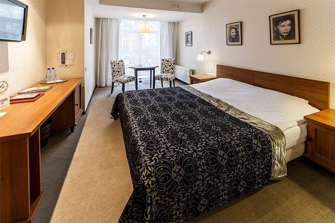 Двухместный номер со всеми удобствами оформлены в стилистике фильмов снимавшихся в Ярославле и Ярославской области. С двумя односпальными или с одной двухспальной кроватью. В номере рабочий стол, мини-бар, шкаф для одежды, прикроватные тумбочки, кондиционер. Собственная ванная комната с косметическими принадлежностями, предоставляются тапочки, халаты по запросу. Завтрак "шведский стол" входит в стоимость проживания. При бронировании просьба уточнять доступность понравившегося номера.Услуги и удобства