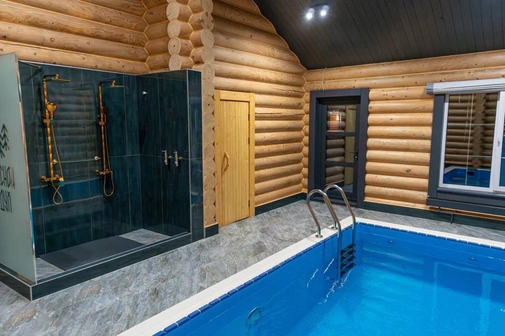 караоке, Wi-Fi, светильник, санузел, халаты, банные полотенца, тапочки, сауна, две двуспальные кровати, диван, кресла, стулья, шкаф для одежды, гардеробная, стол для переговоров, обеденный стол, зеркало, комод, камин, обслуживание номеров, информационная карта, меню, унитаз, раковина, питьевая вода, обеденная зона, гостиная зона, душ, кресло, две спальни, стул, стол, туалет, цифровое тв, диван-кровать, раскладной диван, внутренний телефон, телевизор с плоским экраном, вид на лес, собственный бассейн, парна́я, бутилированная вода, собственный бассейн с подогревом, без питомцевВ доме