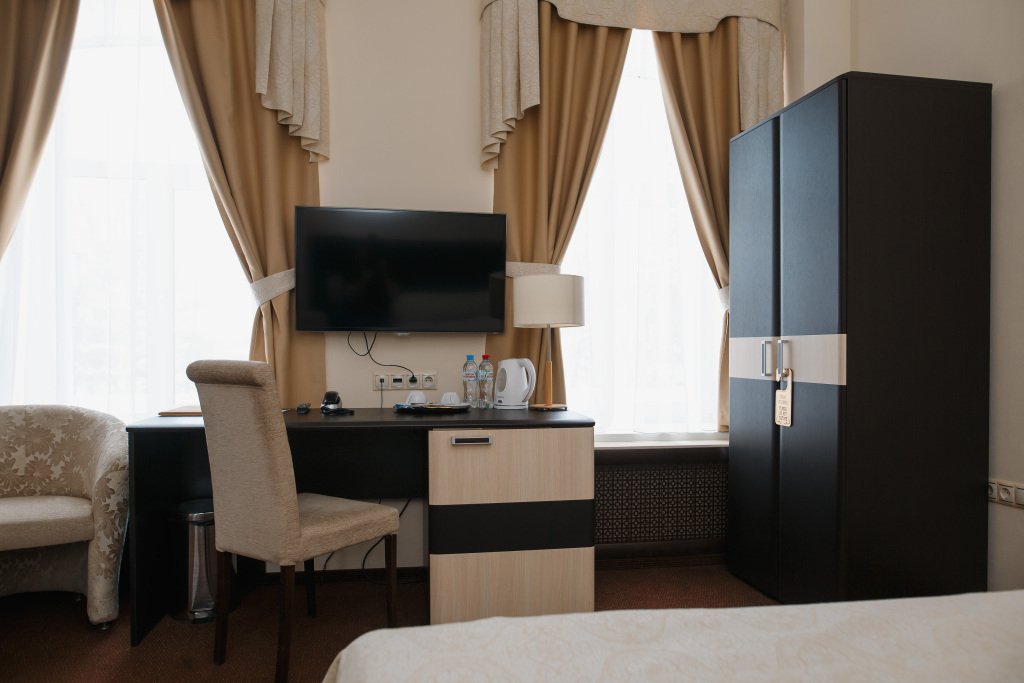 Путешествие в одиночкуТихий отель в тихом центреОтличный отель в самом центре Ярославля в нешумной его части. Условия проживания - прекрасные! Дружелюбный вежливый персонал. Тишина в помещении, в номере есть абсолютно все для удобного проживания (в номере 201 окна выходили во внутренний дворик, шума с улицы от проезжающих машин практически не было слышно, удобная постель, кресло, шкаф, телевизор, холодильник, чайная станция, ежедневная выдача бутылочки с водой, много электророзеток, хорошая душевая и тп). Близко, в шаговой доступности, все основные достопримечательности, до театра Волкова идти 3 минуты. Питаться можно в ресторане отеля, в котором два симпатиных зала и столики во дворике. Ближайшие магазины - Ароматный мир и Пятерочка. Пребыванием осталась довольна, спасибо персоналу за все!