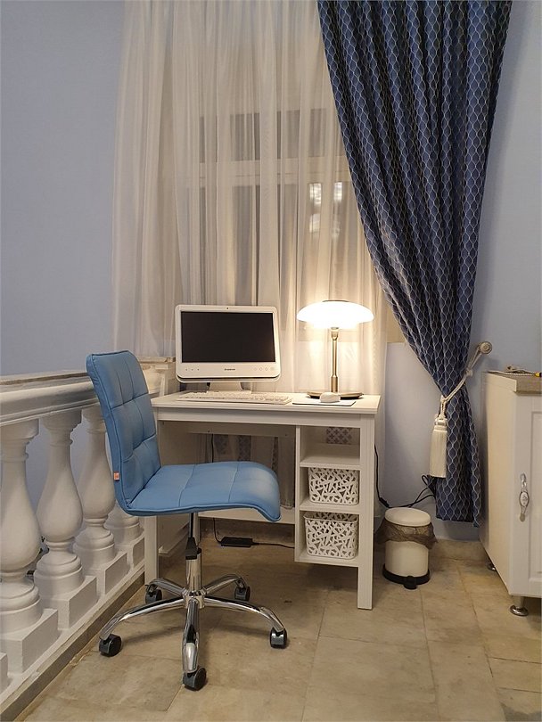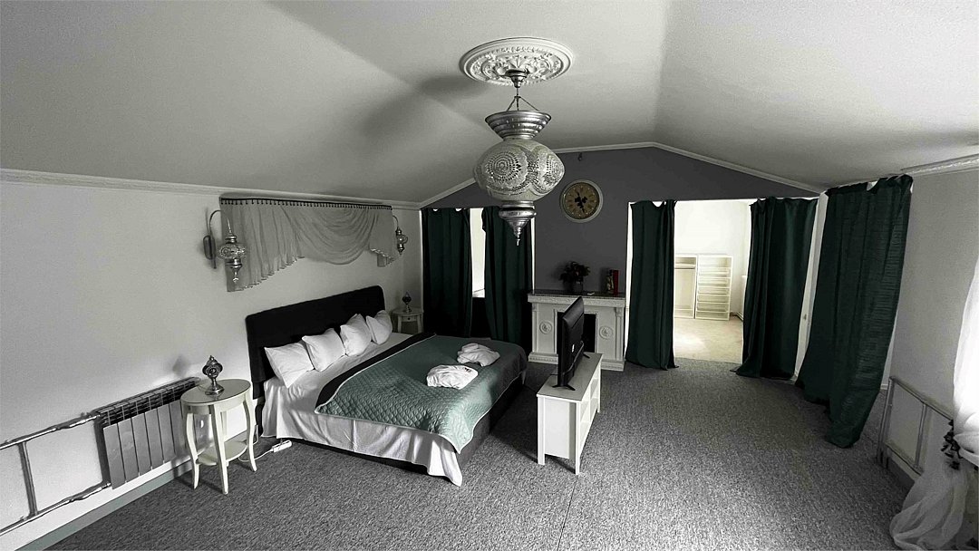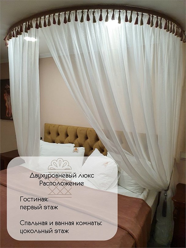 Номер люкс на втором этаже. Комната 50 кв.м. Отличная звукоизоляция. ТВ Smart. Библиотека. Большая гардеробная. Вид на зеленый уютный дворик.Услуги и удобства