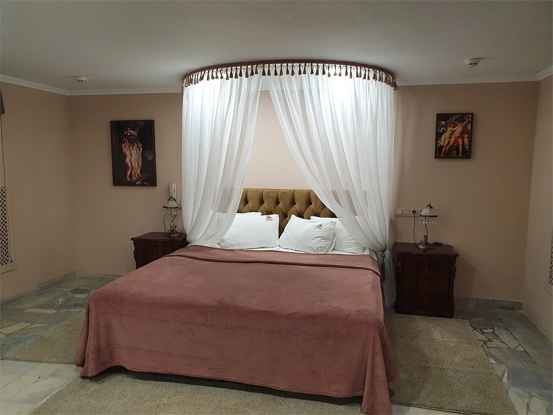 К Вашим услугам дизайнерский номер Люкс, с оригинальной кроватью и декором.Услуги и удобства