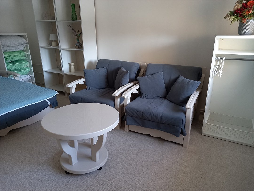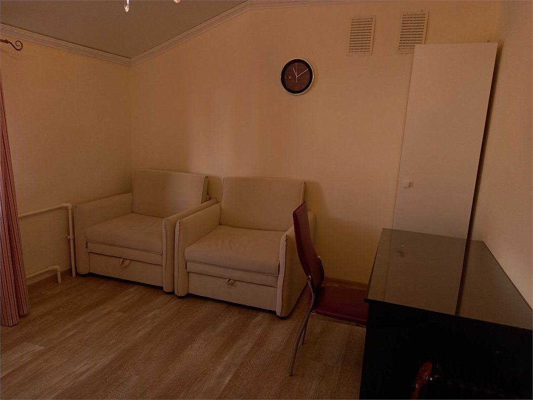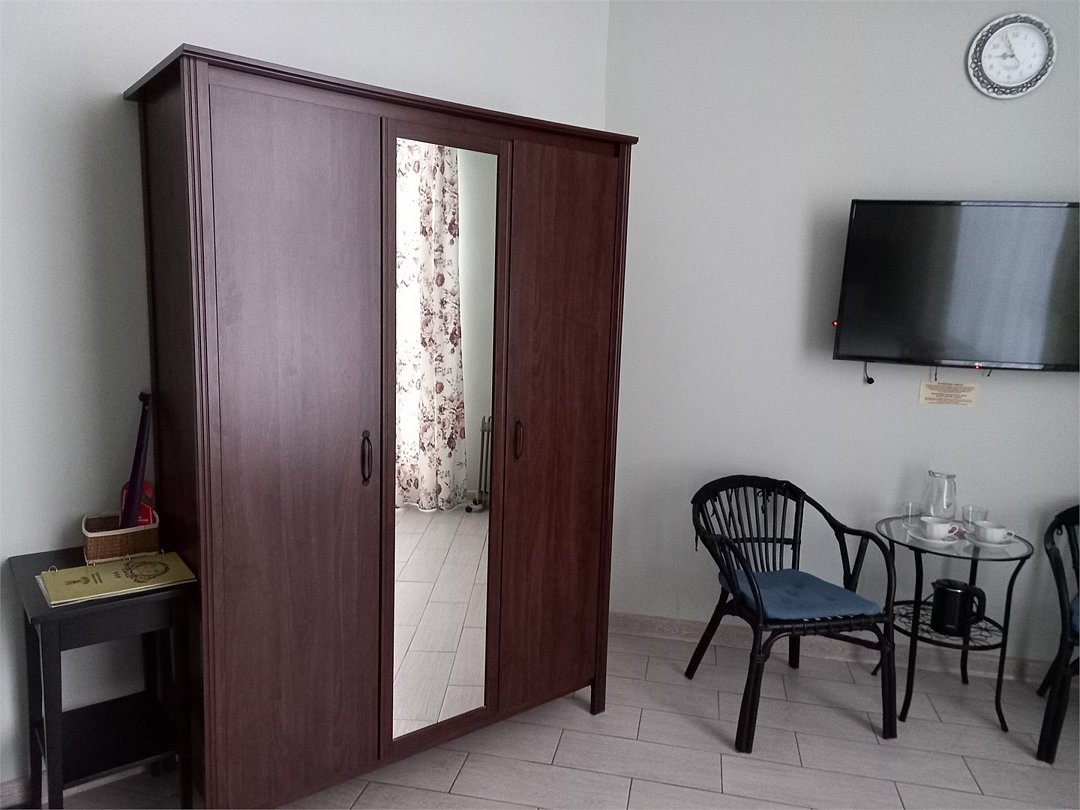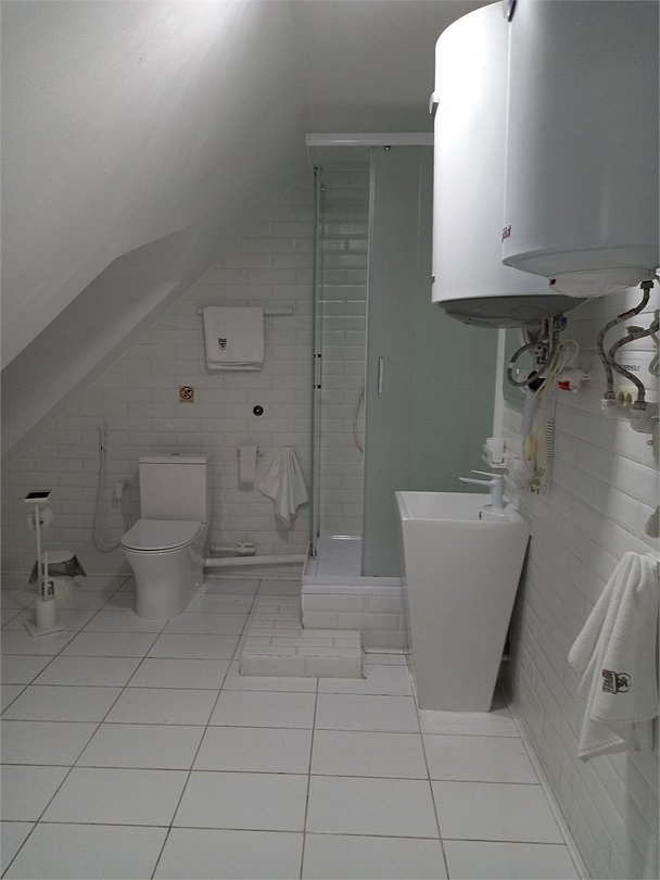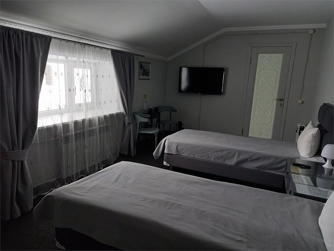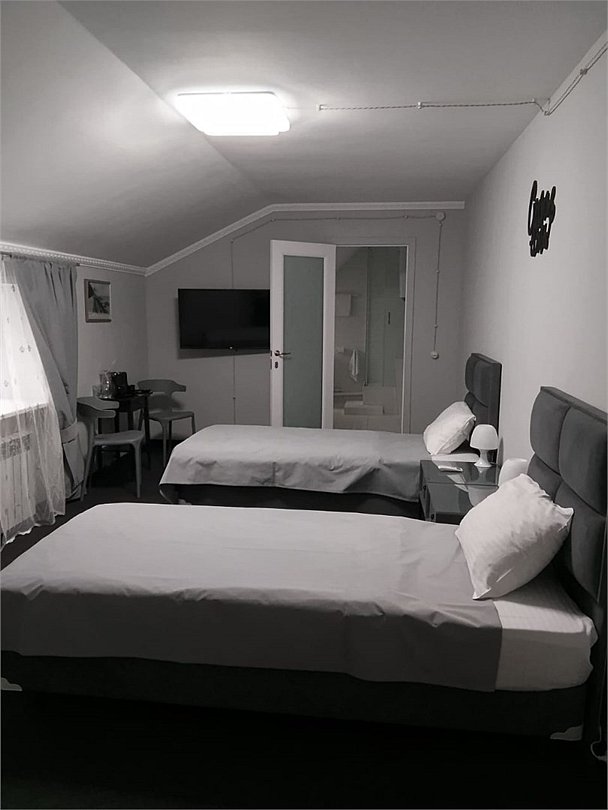 4 номера Стандарт расположены на 1 этаже, выполнены в теплых, пастельных тонах. 1 номер находится на 2 этаже, выполнен в серо-белых тонах. Оснащение самое современное. В каждом номере сплит система, водонагреватель на случай отключения горячей воды, TV, WI-FI, функция теплый пол, шкаф, плечики, сейф, стол кофейный, 2 стула, санузел в номере, просторный душ, гигиенический душ, раковина, фен, средства гигиены, постельное белье, полотенца и т.д.Услуги и удобства