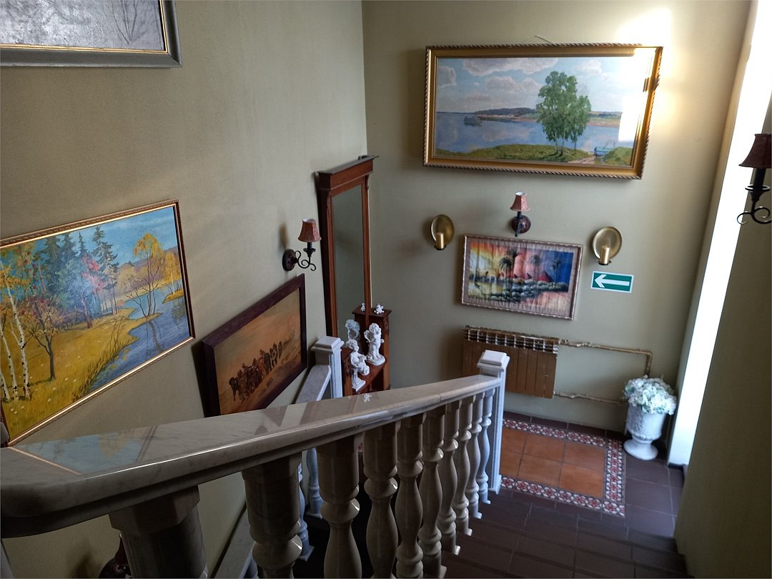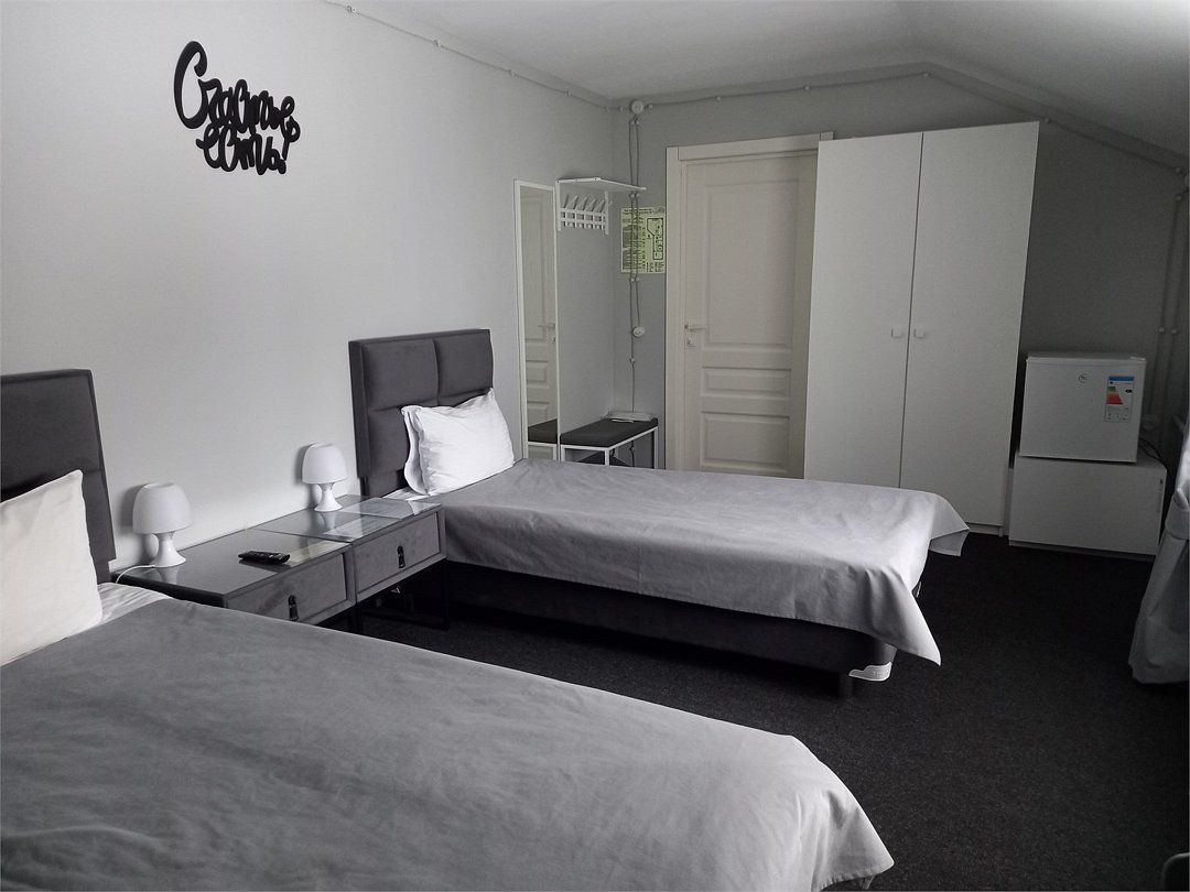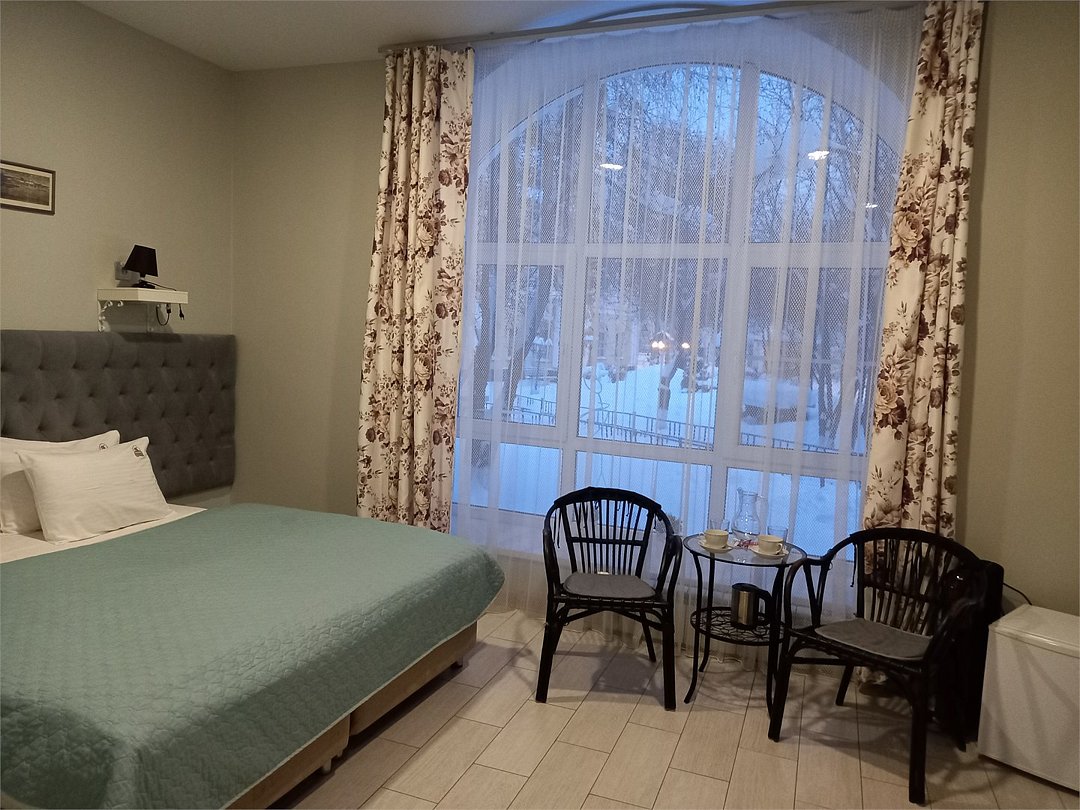 К Вашим услугам один дизайнерский номер Люкс, с панорамным окном, оригинальной кроватью и декором на 1 этаже. И второй номер, расположенный на 2 втором этаже, выполненный в стиле "Минимализм" в бело-серо-черных тонах. Номер имеет небольшое окно из которого открывается прекрасный вид на сад и двор музейного комплекса.Услуги и удобства