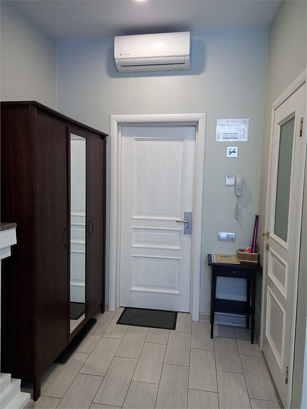 Wi-Fi, холодильник, кондиционер, светильник, настольные лампы, фен, плита для приготовления пищи, микроволновая печь, обогреватель, ванная комната, ванна, санузел, дополнительная ванная комната, водонагреватель, халаты, банные полотенца, тапочки, гигиенические средства, кровать «King size», обеденный стол, кухня, набор посуды, чайник, мягкая мебель, вид на сад, три односпальные кровати, вид во двор, ламинат, высокие потолки, столовые приборы, туалет, телевизор со Smart TV, теплые полы, духовой шкаф, морозильная камера, фумигатор, без питомцевВ апартаментах
