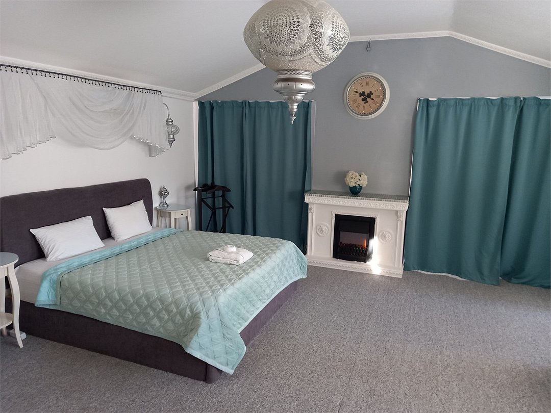 Номер с одной двуспальной кроватью. Все имеется для длительного или маленького срока проживания. В номере панорамное окно с видом на сад и декоративный камин.Услуги и удобства
