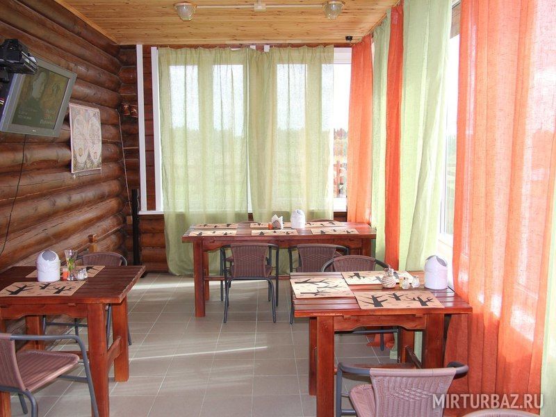 на первом этаже: уютную сауну на 6-8 человек, зал-трапеза на 12 человек + 2 спальных места.