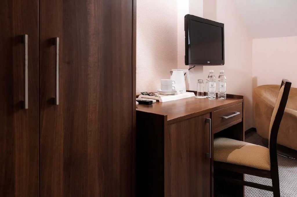 Номера оснащены душевой кабиной, зеркалом с подсветкой и розеткой для фена и электробритвы. Имеется телевизор с пультом дистанционного управления, холодильник, письменный стол и кондиционер. Вы можете выбрать одну или две кровати для комфортного размещения. Номера выполнены в различной цветовой гамме. Ковры и декоративные украшения создают уютную атмосферу. Гостиница оснащена современными средствами теле-коммуникации. К вашим услугам БЕСПЛАТНО: Wi-Fi интернет, парковка, бассейн+ сауна.Услуги и удобства