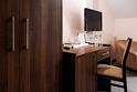 телевизор, кабельное телевидение, Wi-Fi, кондиционер, светильник, фен, душевая кабина, санузел, банные полотенца, тапочки, косметические средства, односпальная кровать, шкаф для одежды, вешалки, письменный стол, багажная тумба, зеркало, чайник, раковина, ковровое покрытие, вид на сад, вид на город, кулер на этаже, кресло, стул, тумба, внутренний телефон, фумигатор, уборка номераВ номере