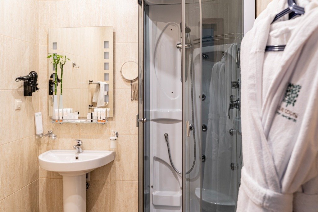 Санузе с душем, ТВ, мини-холодильник