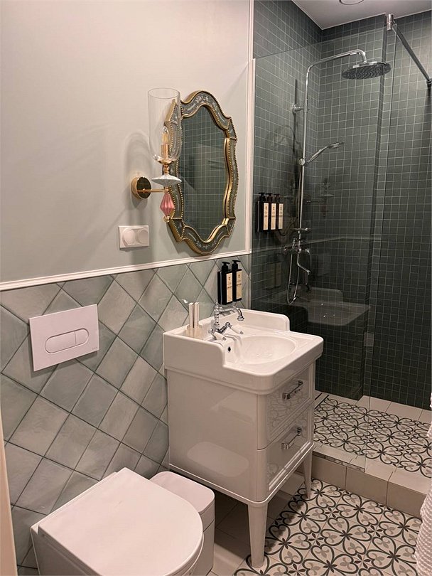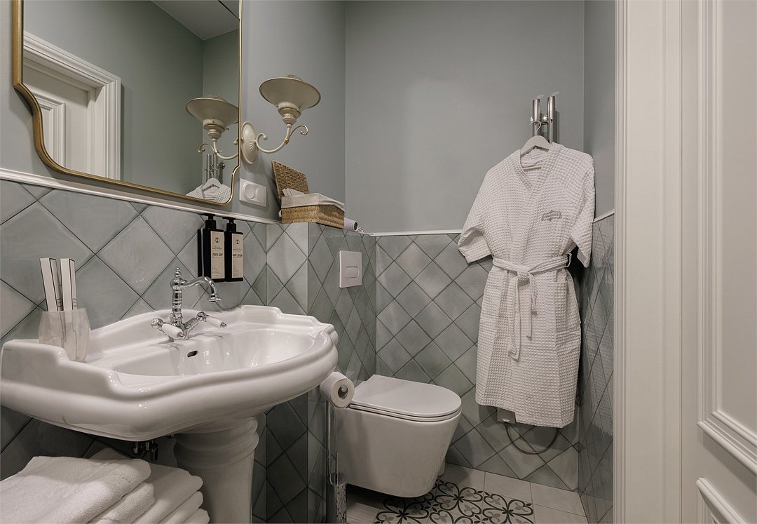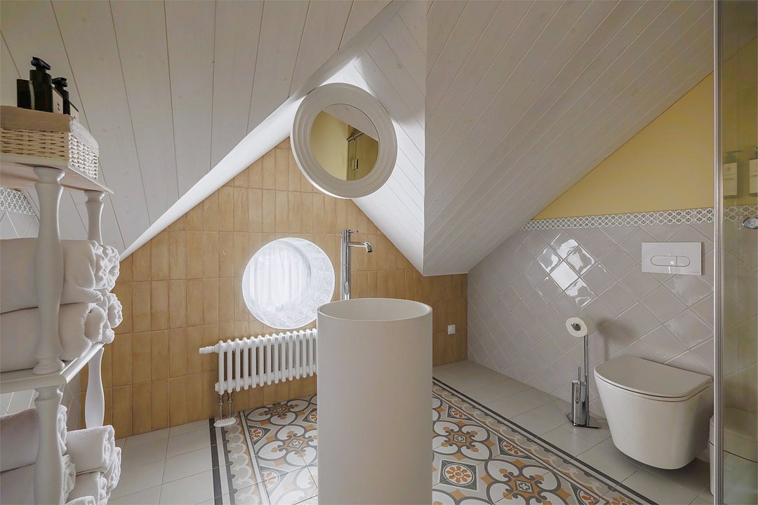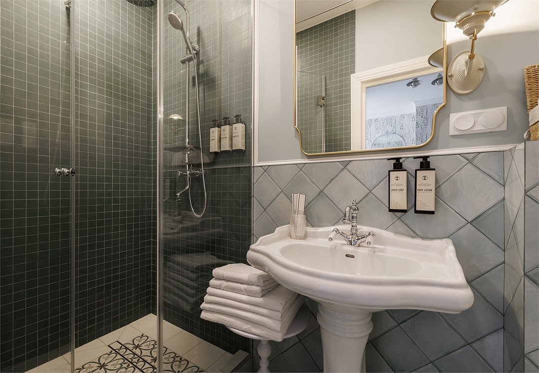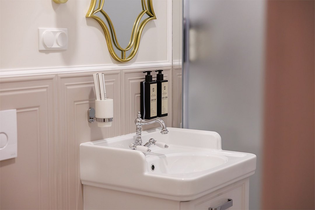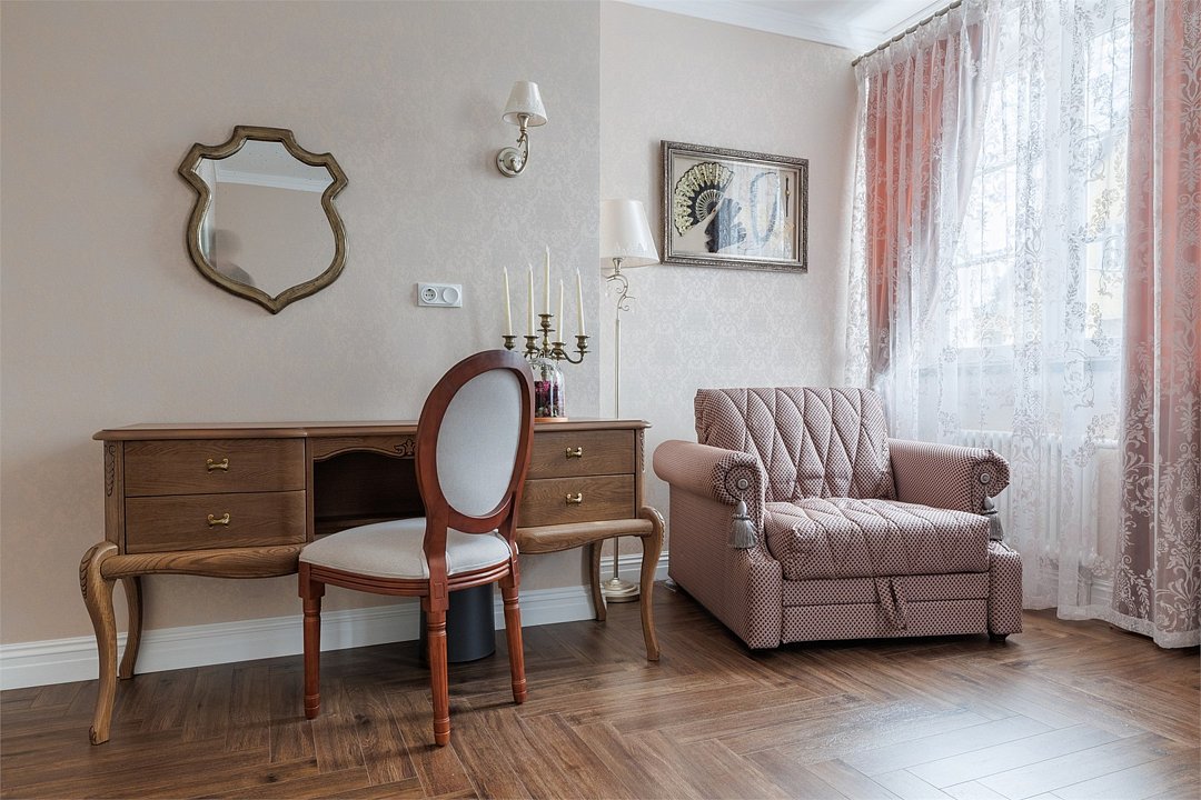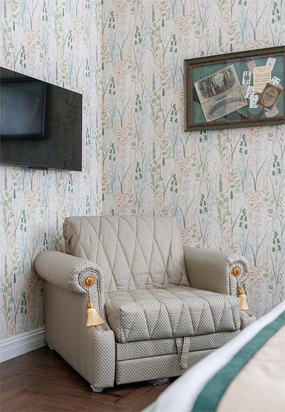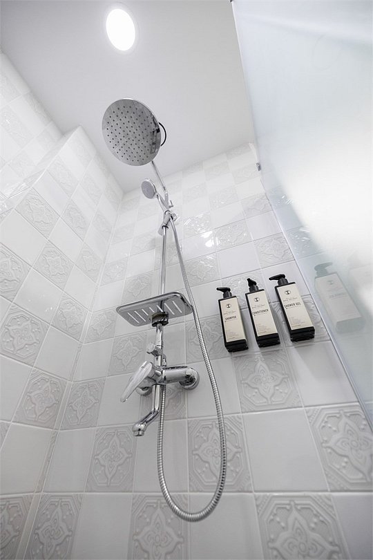 телевизор, Wi-Fi, кондиционер, светильник, фен, душевая кабина, банные принадлежности, халаты, банные полотенца, тапочки, косметические средства, кровать «Queen size», тумбы, зеркало, эксклюзивная мебель, унитаз, раковина, отопление, вид на город, паркет, стул, туалетный столик, москитная сетка, мансардные окна, телевизор со Smart TV, номер для некурящих, уборка номера, туалетные принадлежности премиум-класса, бутилированная вода, шапочка для душа, мылоВ гостиничном номере