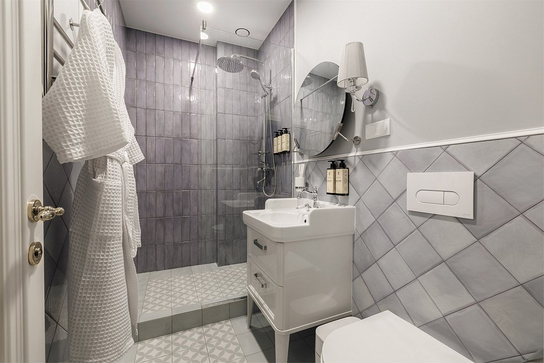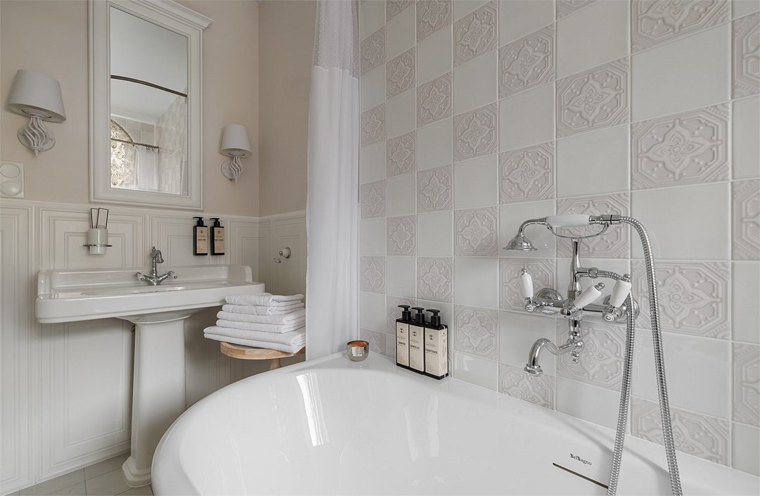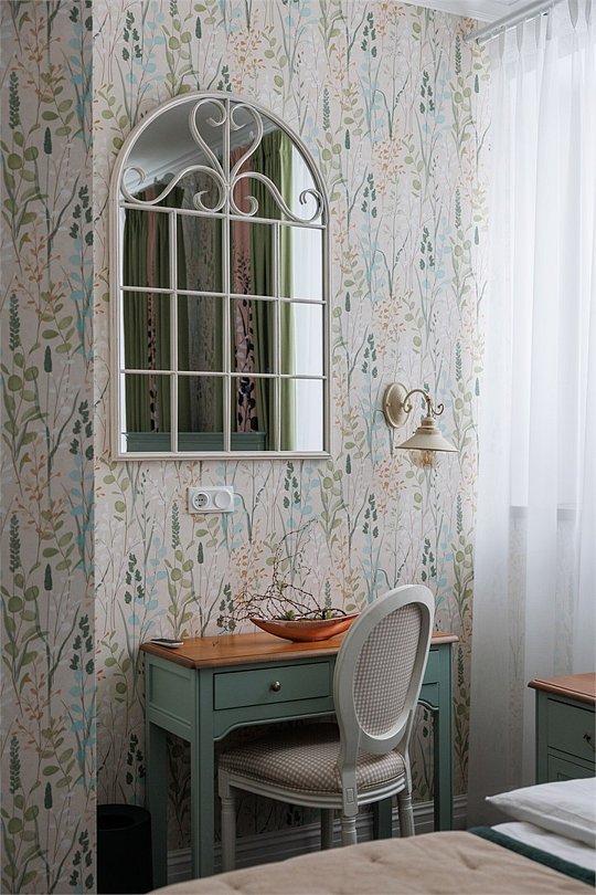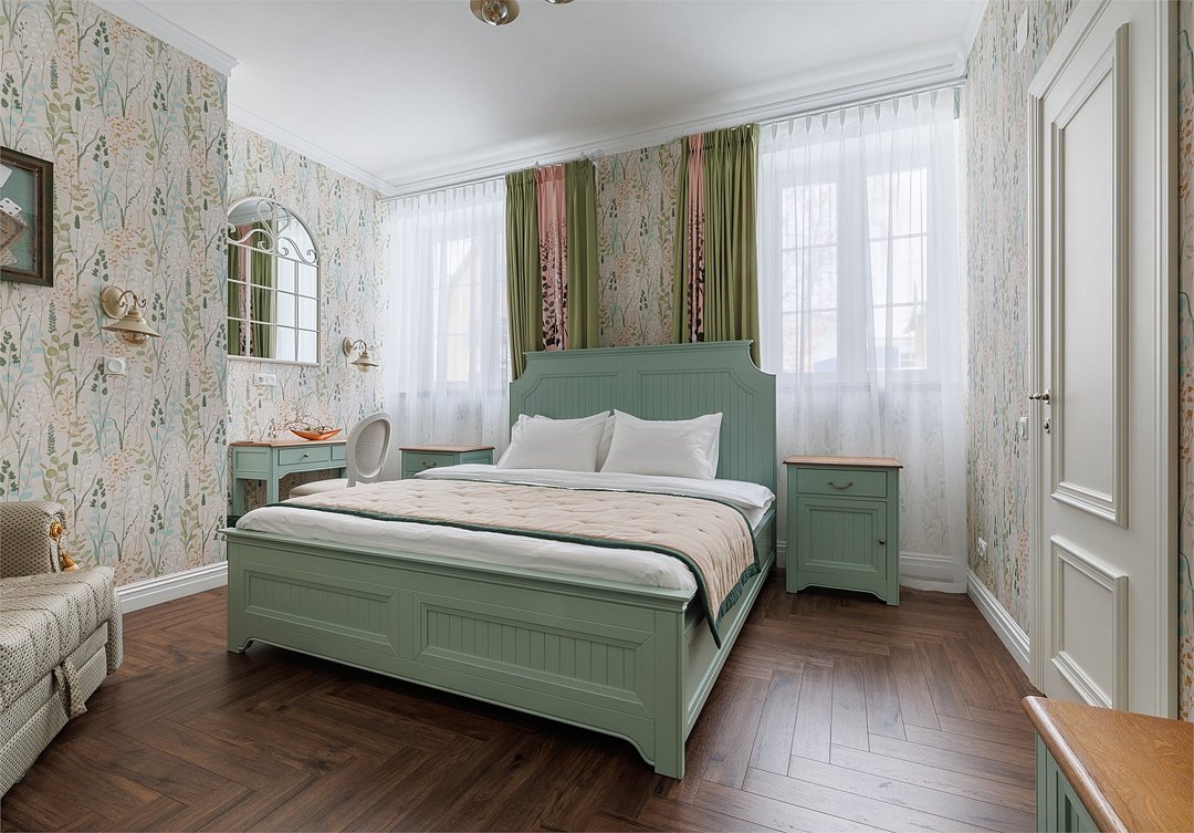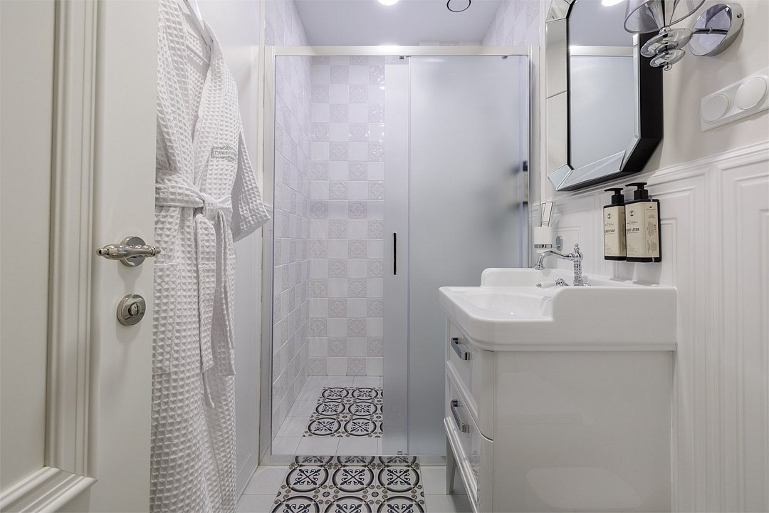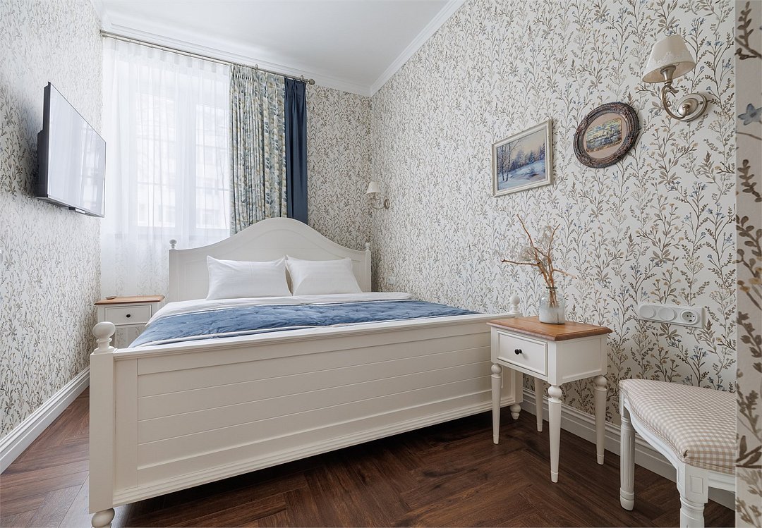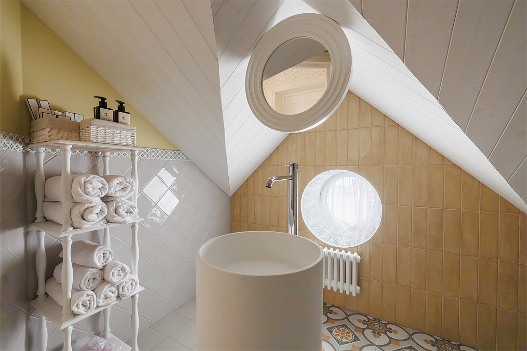 телевизор, Wi-Fi, кондиционер, светильник, фен, душевая кабина, банные принадлежности, халаты, банные полотенца, тапочки, косметические средства, кровать «Queen size», тумбы, зеркало, эксклюзивная мебель, унитаз, раковина, отопление, вид на город, паркет, стул, туалетный столик, москитная сетка, мансардные окна, телевизор со Smart TV, номер для некурящих, уборка номера, туалетные принадлежности премиум-класса, бутилированная вода, шапочка для душа, мылоВ гостиничном номере