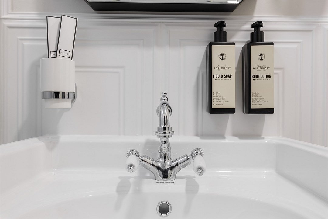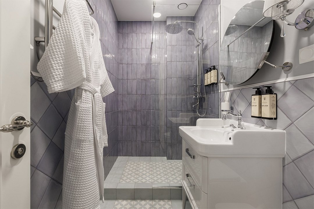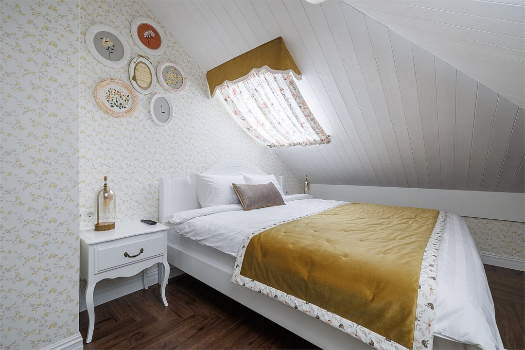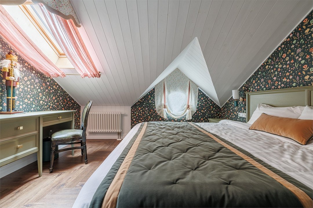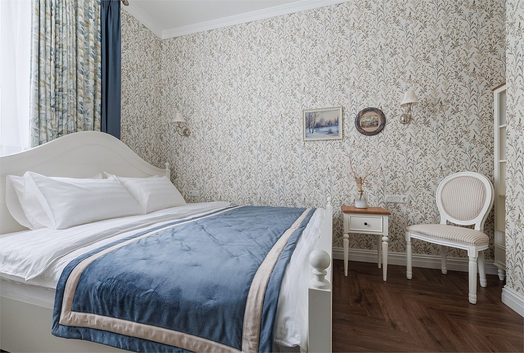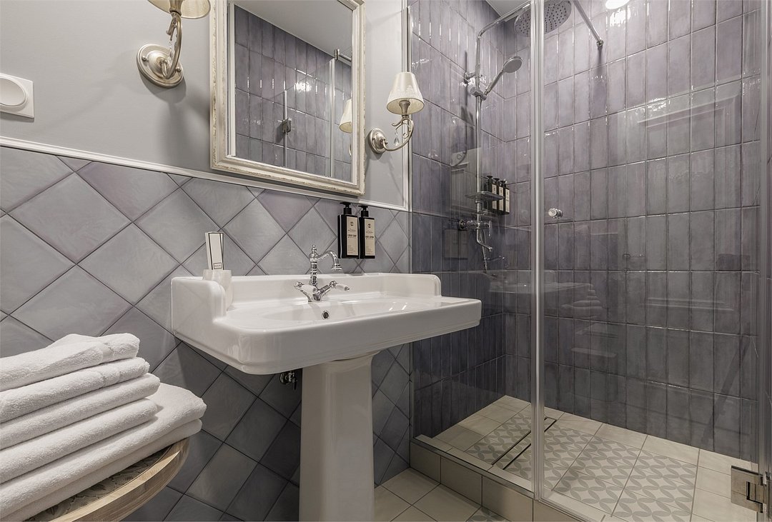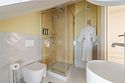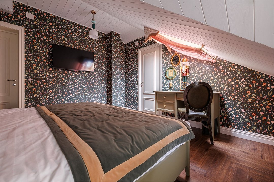 телевизор, Wi-Fi, кондиционер, светильник, фен, душевая кабина, банные принадлежности, халаты, банные полотенца, тапочки, косметические средства, кровать «Queen size», тумбы, зеркало, эксклюзивная мебель, унитаз, раковина, отопление, вид на город, паркет, стул, туалетный столик, москитная сетка, мансардные окна, телевизор со Smart TV, номер для некурящих, уборка номера, туалетные принадлежности премиум-класса, бутилированная вода, шапочка для душа, мылоВ гостиничном номере