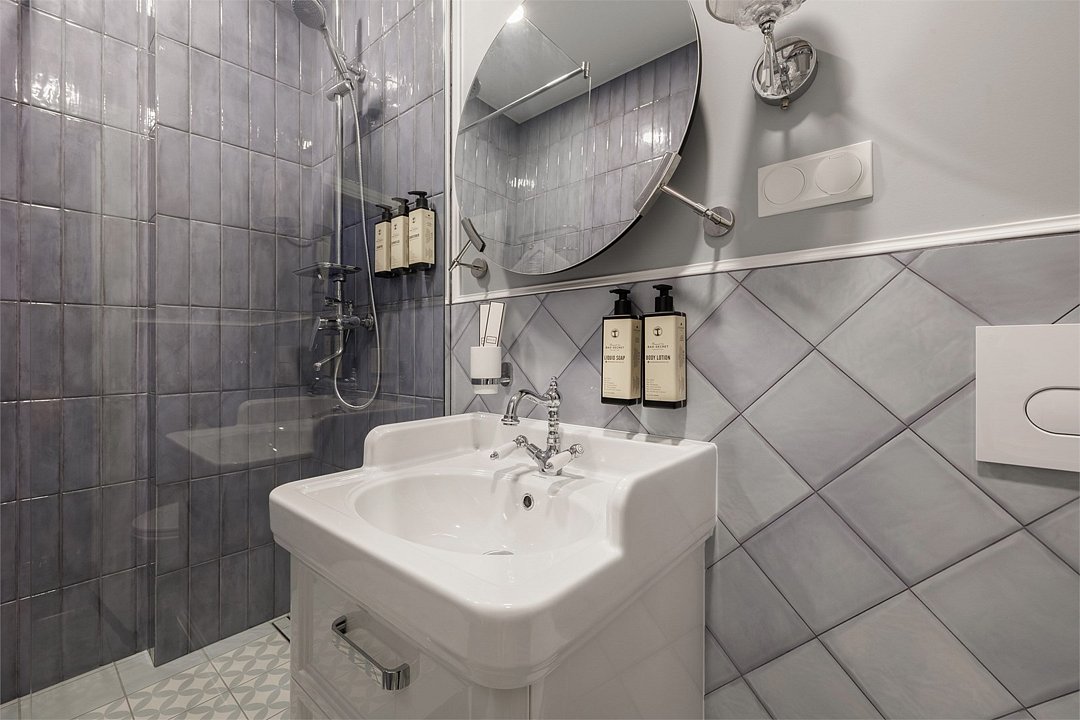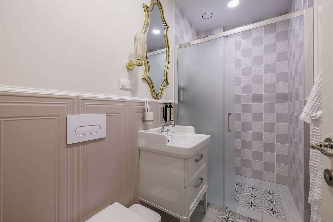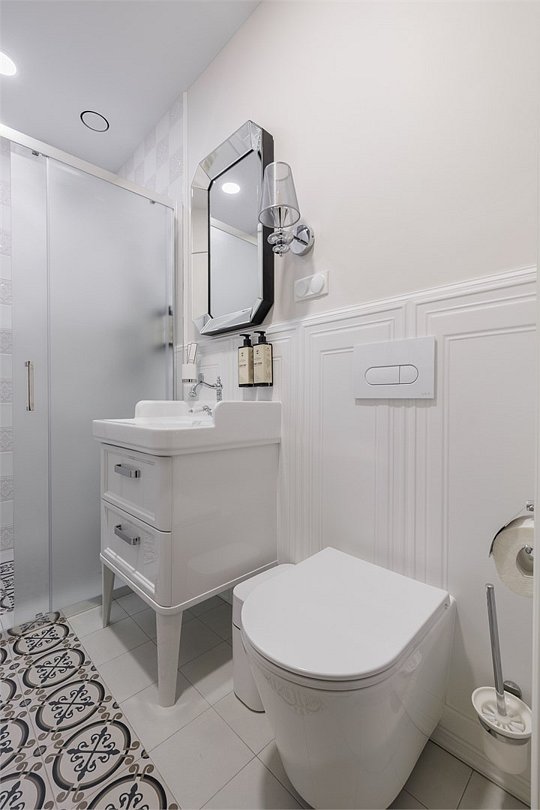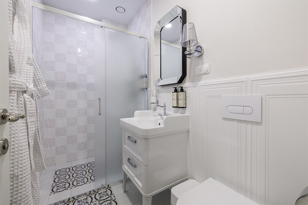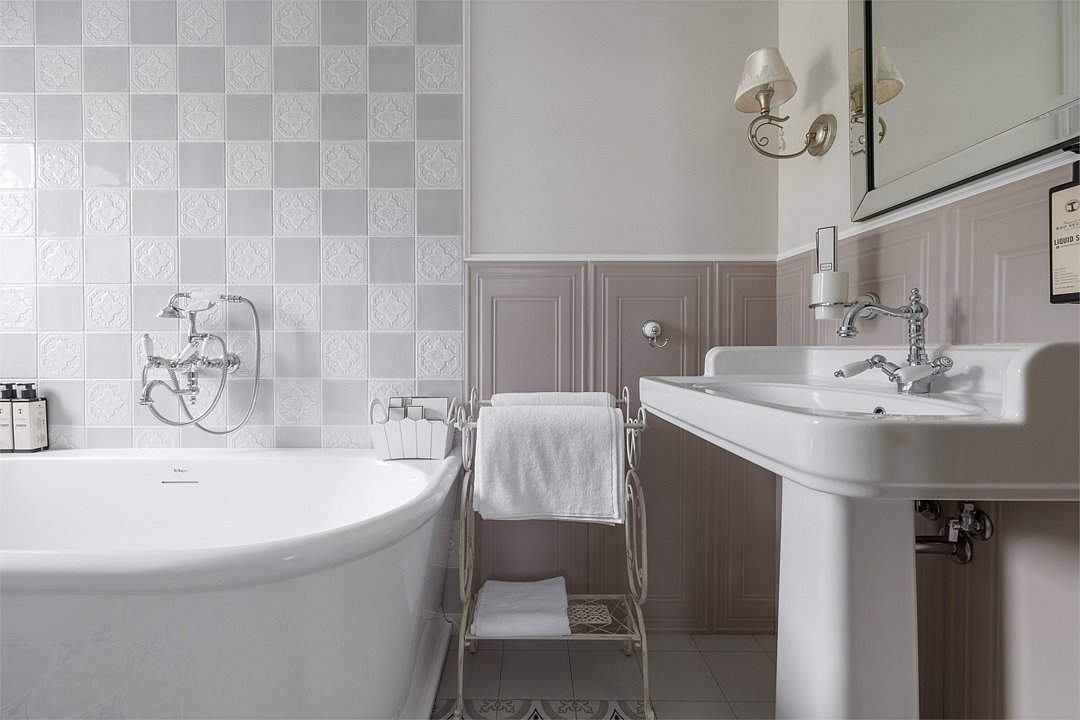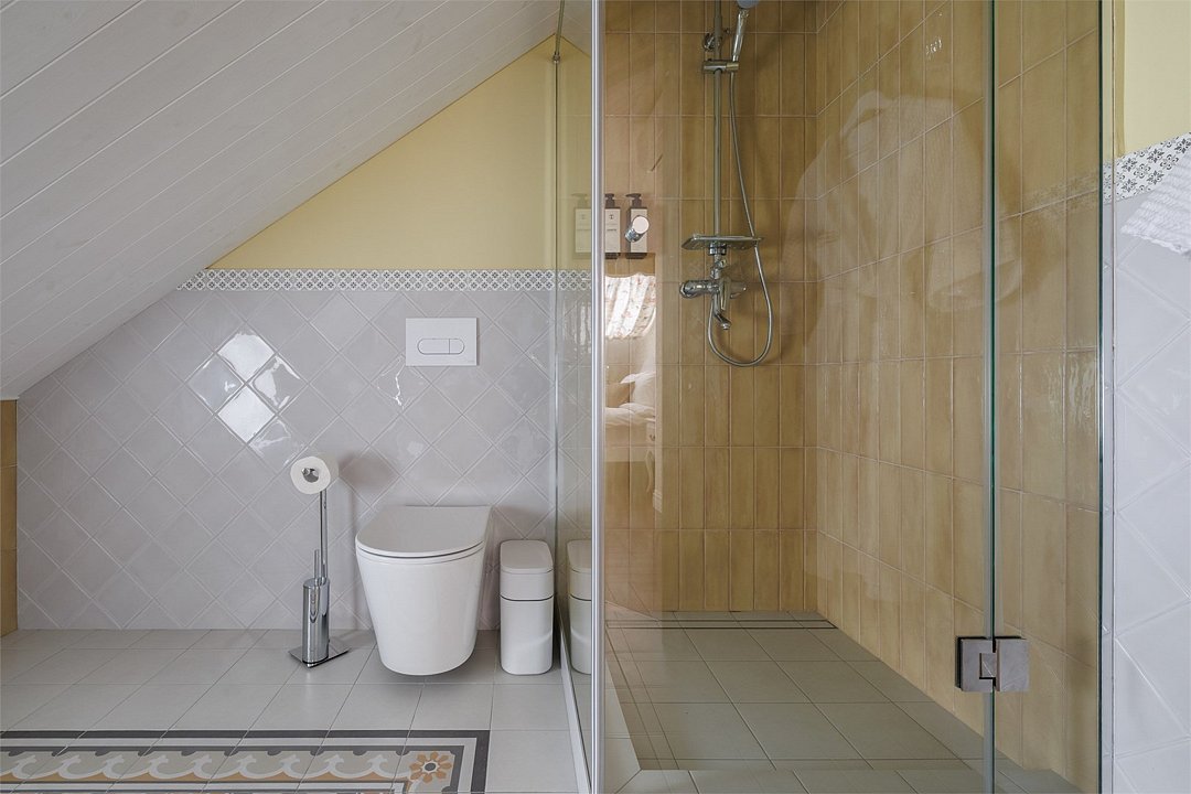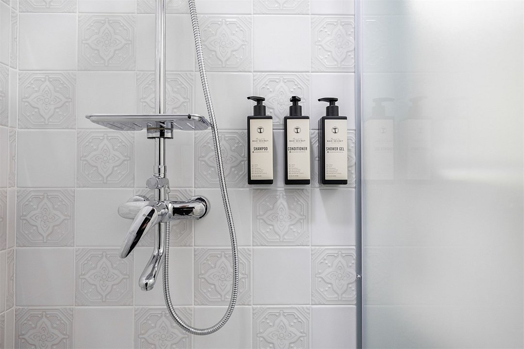 телевизор, Wi-Fi, кондиционер, светильник, фен, душевая кабина, банные принадлежности, халаты, банные полотенца, тапочки, косметические средства, кровать «Queen size», тумбы, зеркало, эксклюзивная мебель, унитаз, раковина, отопление, вид на город, паркет, стул, туалетный столик, москитная сетка, мансардные окна, телевизор со Smart TV, номер для некурящих, уборка номера, туалетные принадлежности премиум-класса, бутилированная вода, шапочка для душа, мылоВ гостиничном номере