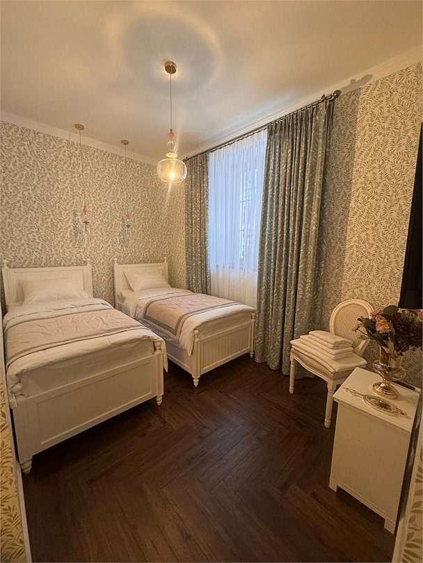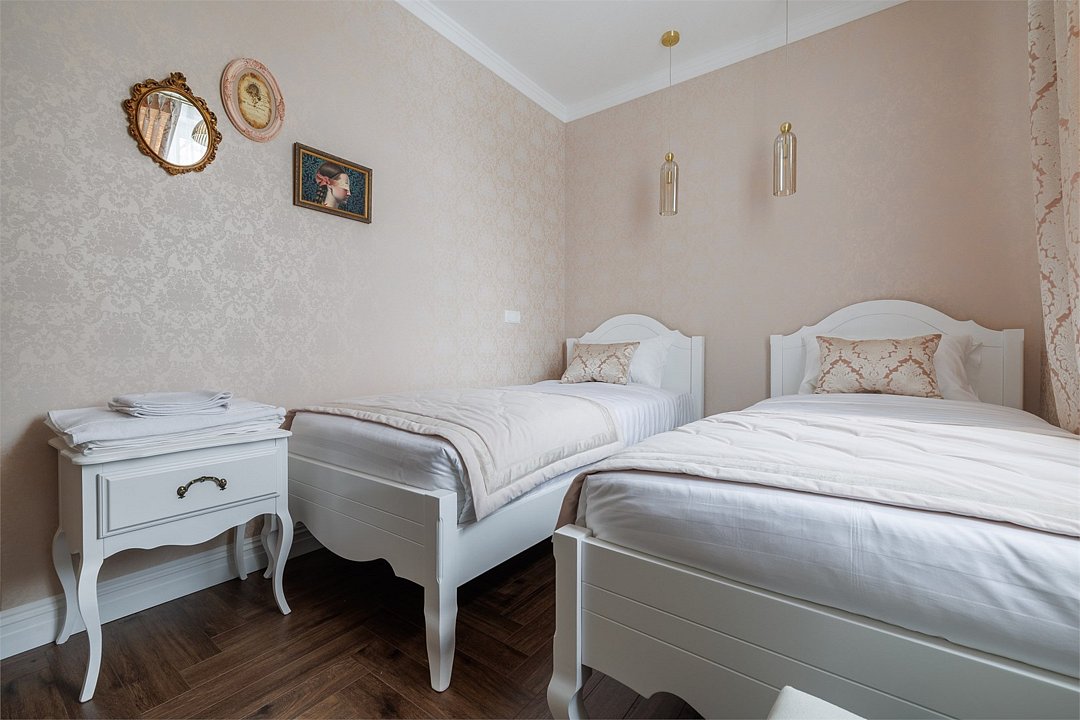 телевизор, Wi-Fi, кондиционер, светильник, фен, ванная комната, душевая кабина, теплый пол, халаты, банные полотенца, тапочки, косметические средства, две односпальные кровати, тумбы, вешалки, зеркало, эксклюзивная мебель, унитаз, раковина, мягкая мебель, отопление, вид на город, кресло, паркет, стул, туалетный столик, москитная сетка, телевизор со Smart TV, теплые полы, уборка номера, туалетные принадлежности премиум-класса, бутилированная вода, веранда, шапочка для душа, затемняющая штораВ гостиничном номере