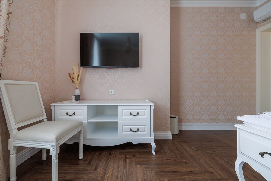 В каждом номере категории люкс имеются большие удобные кровати, ортопедический матрас, комфортные ванные комнаты с романтичными ваннами, санузлы, телевизор с функцией голосового управления, кондиционер, фен, дополнительное место для ребенка (раскладное кресло или тахта, спальное место 90х190)Услуги и удобства