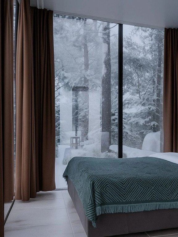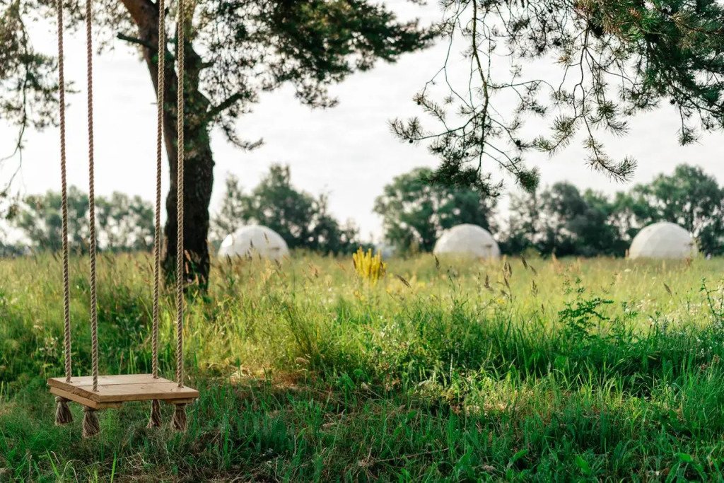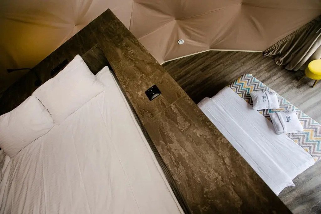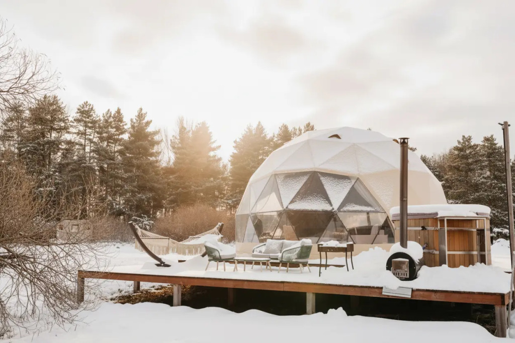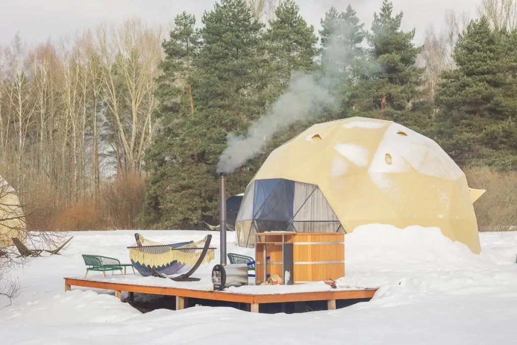 Все домики-полусферы расположены на первой линии, где одна их часть выходит на реку, а другая — на залив.